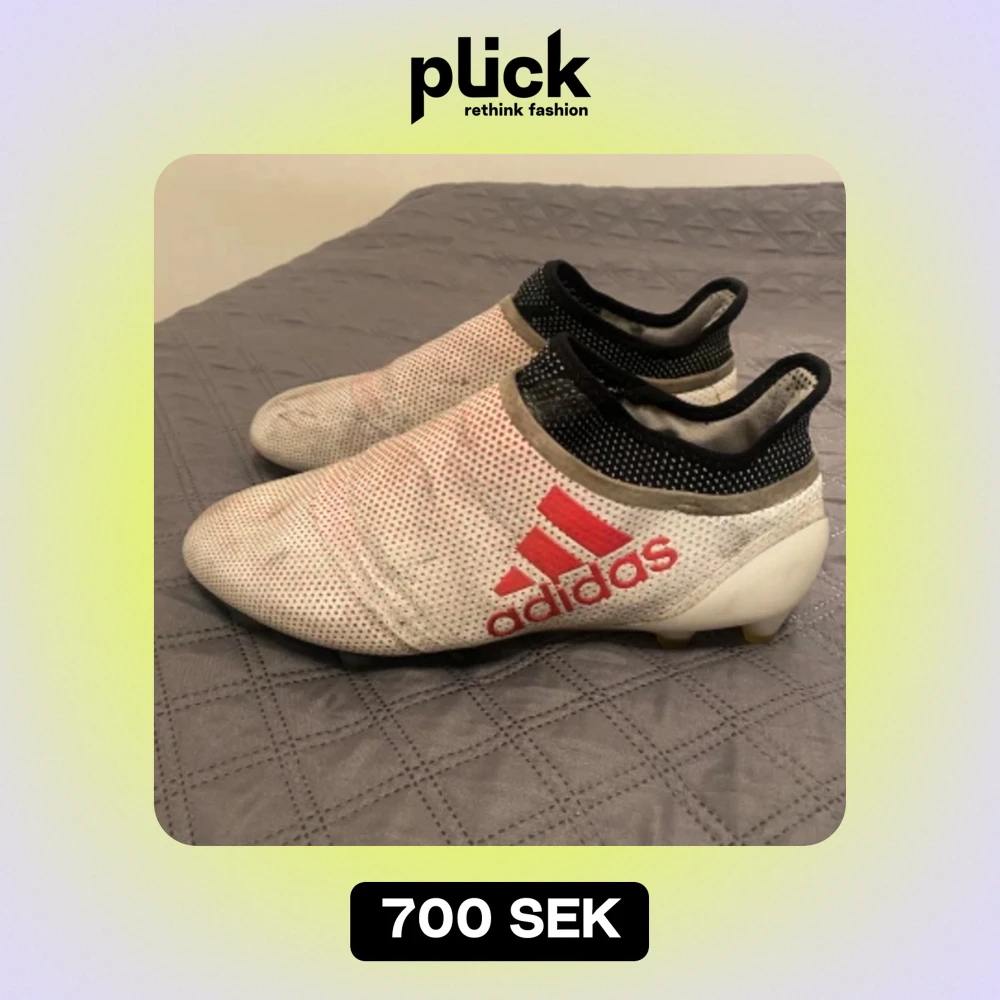 Adidas fotbollsskor som är använda men knappast slitna och har inga skador, lite smutsiga på utsidan som gör så att dem ser lite gamla ut, väldigt sköna skor som sitter perfekt