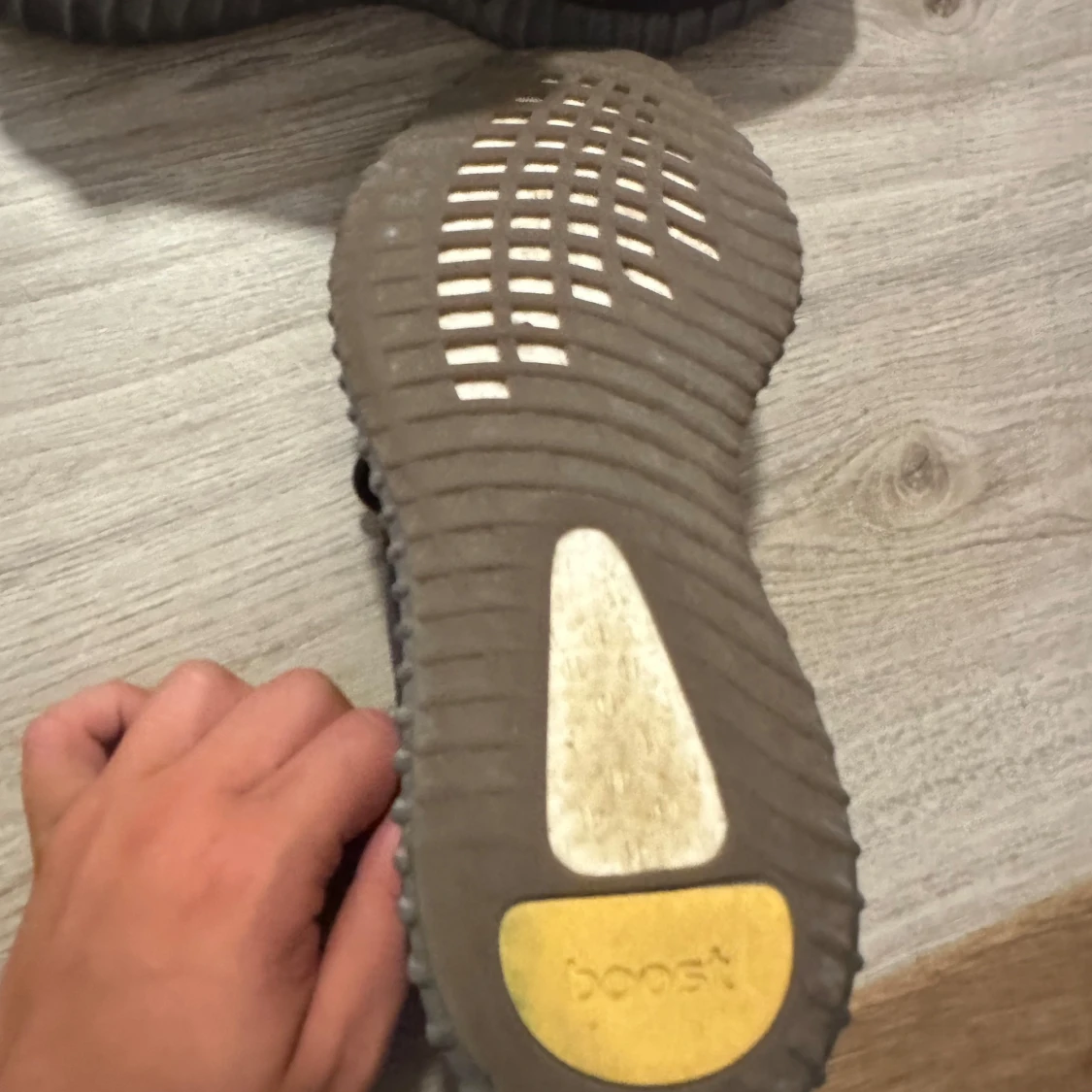 Säljer ett par Adidas Yeezy Boost 350 V2 i mörkgrå färg. Skorna har stickad ovandel i syntet, snörning och en ribbad platt sula med Boost-dämpning. Ikoniska tre ränder på hälen och cool textur på ovandelen. Perfekt för dig som gillar streetwear och vill sticka ut.