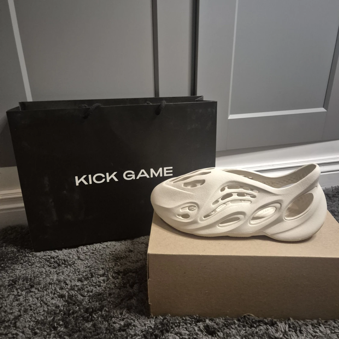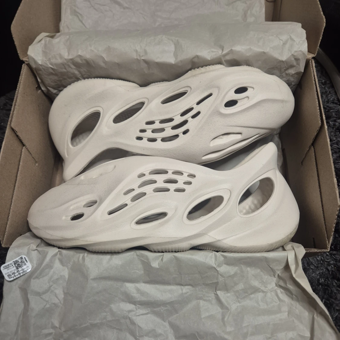 Säljer ett par Adidas Yeezy Foam Runner i färgen "sand".Som är köpta i London på kick game där många kändisar har varit på, som man kan se på kick games YouTube kanal. Skorna har futuristisk design med många hål och en chunky, vågig sula. Pris kan diskuteras💕