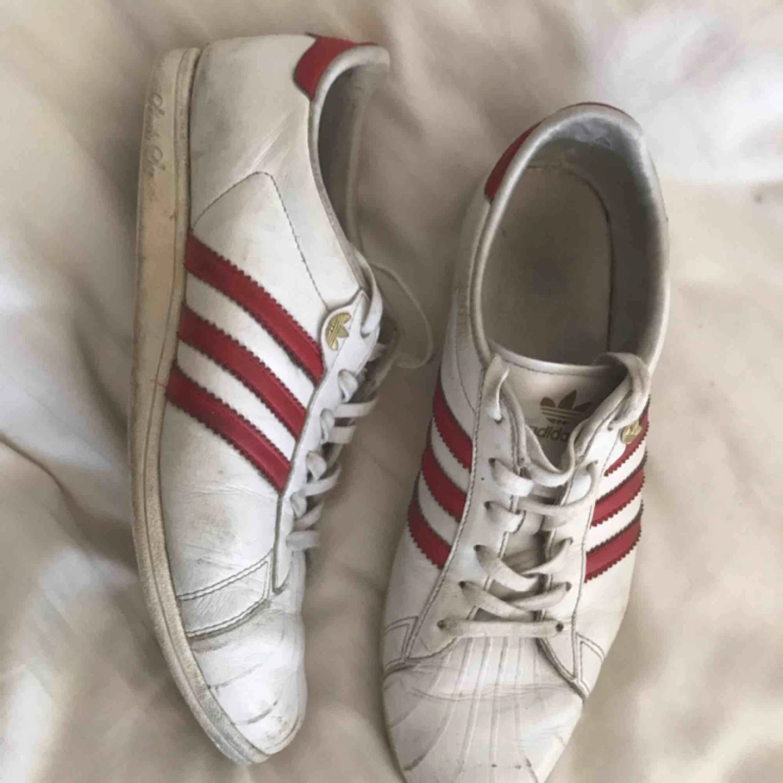 Adidasskor! Säljer mina favoritskor för måste acceptera att dom är för stora. Passar smalare fötter då de tillhör adidas ”sleek series”. Slitningar syns på bild 2 och 3, men i övrigt är skorna fint skick. Snyggaste vintage-sneakern!