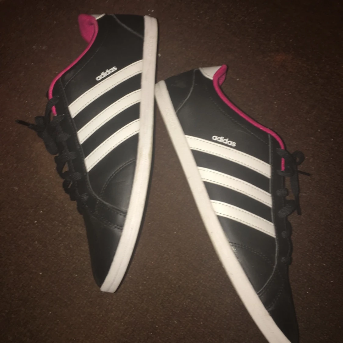 Hejsan! Säljer mina fina adidas skorna färgen svart/vitt. Du ser storleken på sista bilden dock så anser jag inte det stämmer då dem är försmå för mig, så storlek 40 är dem! Använda endast en enda gång. Inga bieffekter