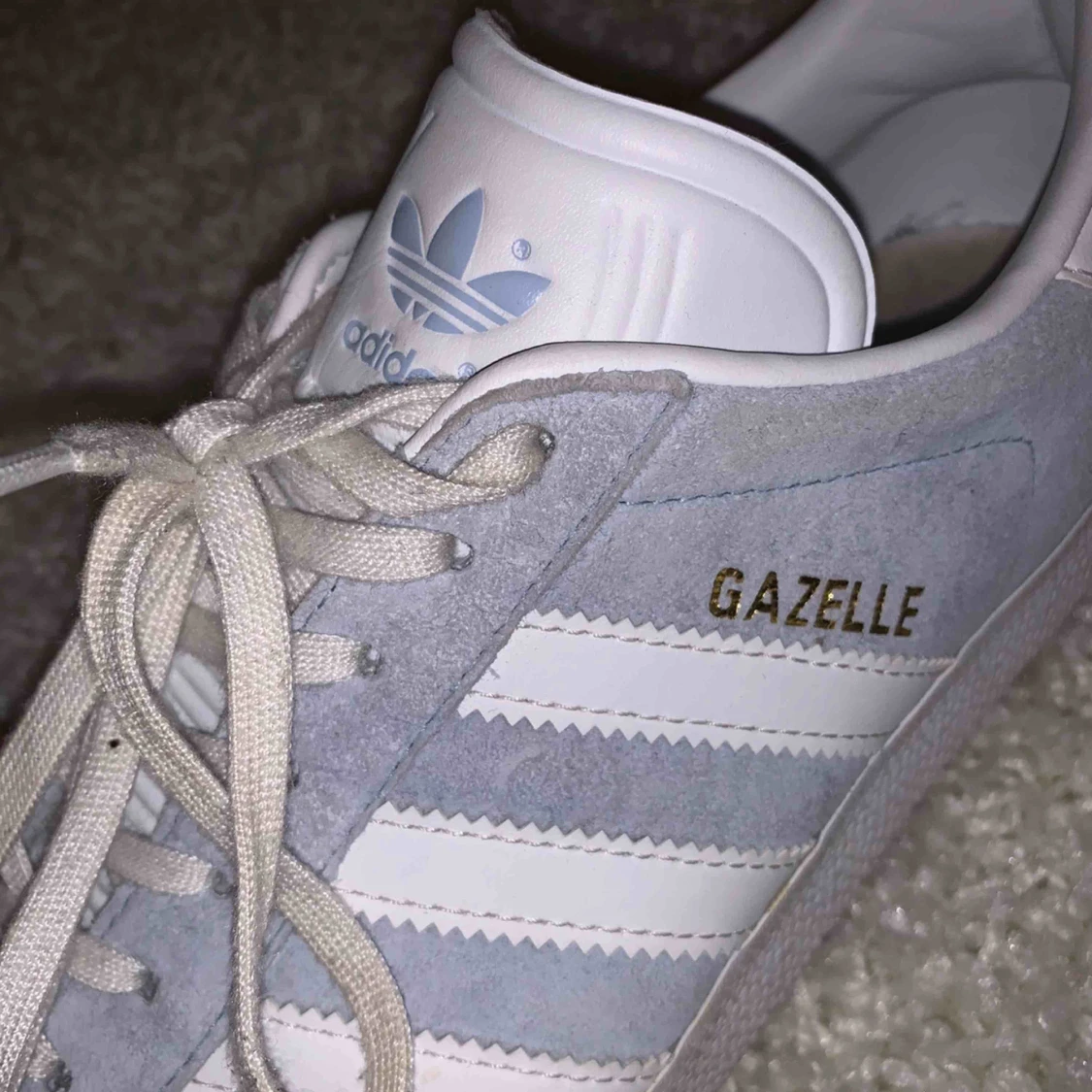 Super snygga ljusblå Adidas skor i modellen Gazelle. Säljs då dom va för stora och inte kommit till användning. Kontakta vid frågor och mer information💙🤍