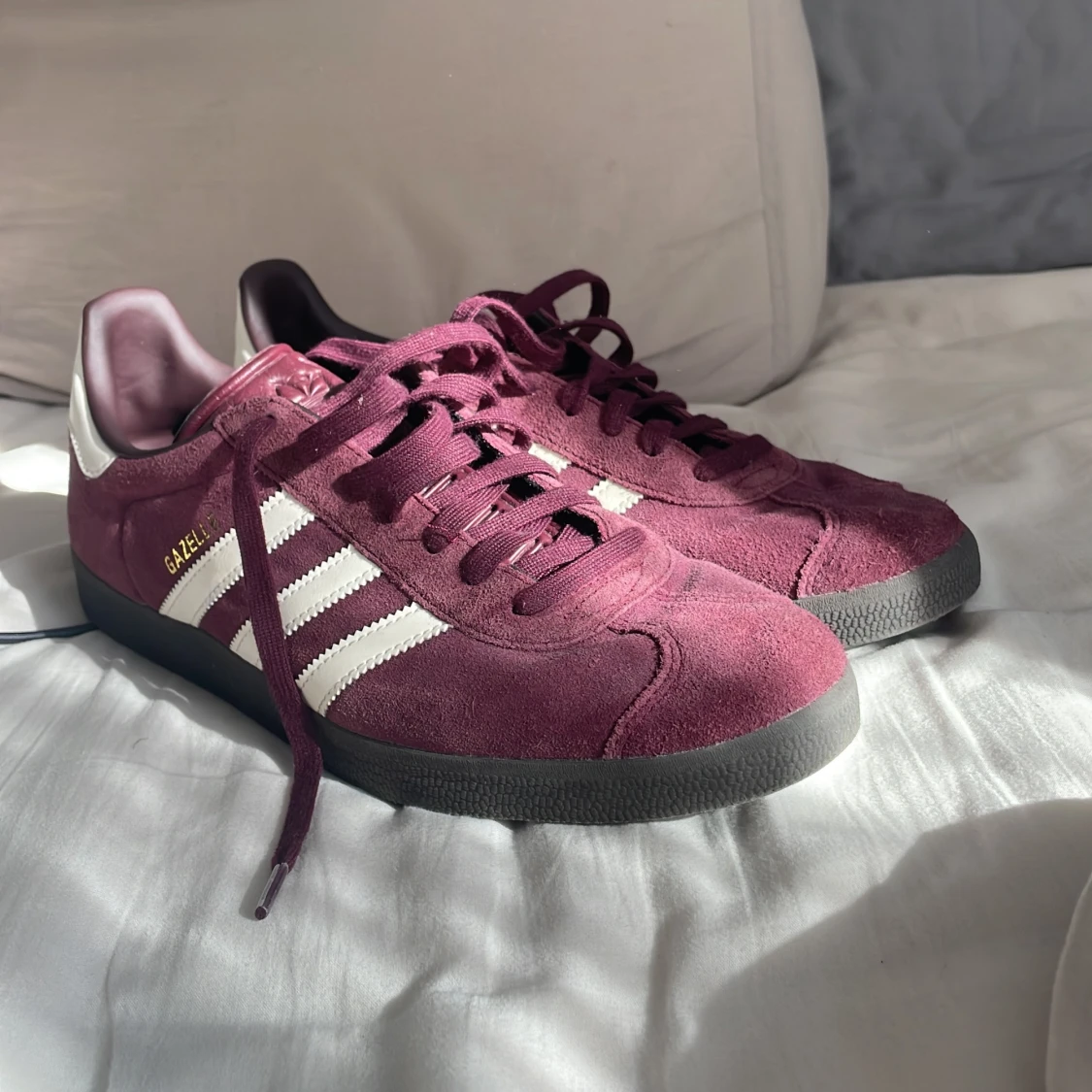 Säljer nu dessa vinröda adidas gazelle skor. Skick 9/10 Säljer pga köpte dem spontant och dem kom inte till Andvändning. Storleken är 45 Skriv vid frågor Priset kan diskuteras.