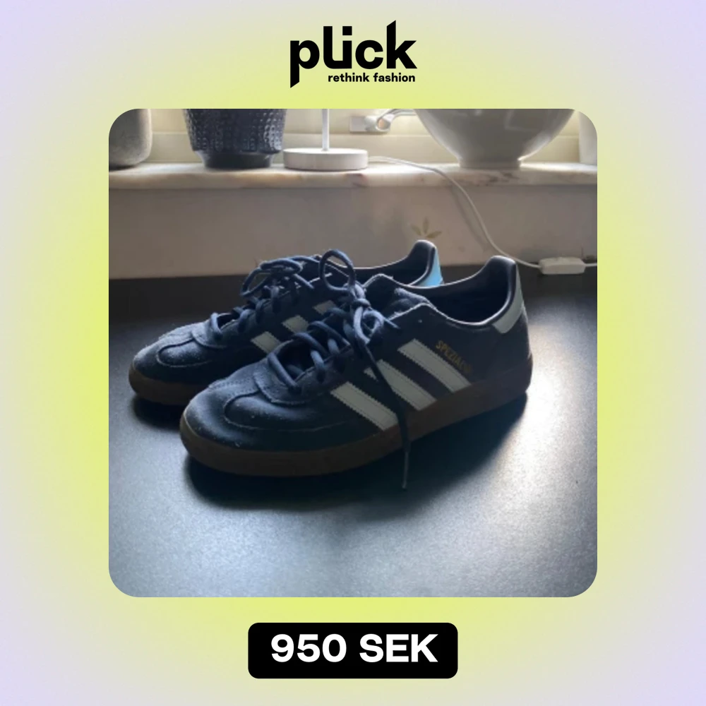 Jättesnygga nästan oanvända adidas Spezial i mörkblå med ljusblå ränder och gulddetaljer. Bara använda några fåtal gånger och inga defekter då de inte passar min stil helt. I storlek 40 2/3 passar doxk mig som har 40. ☺️💗