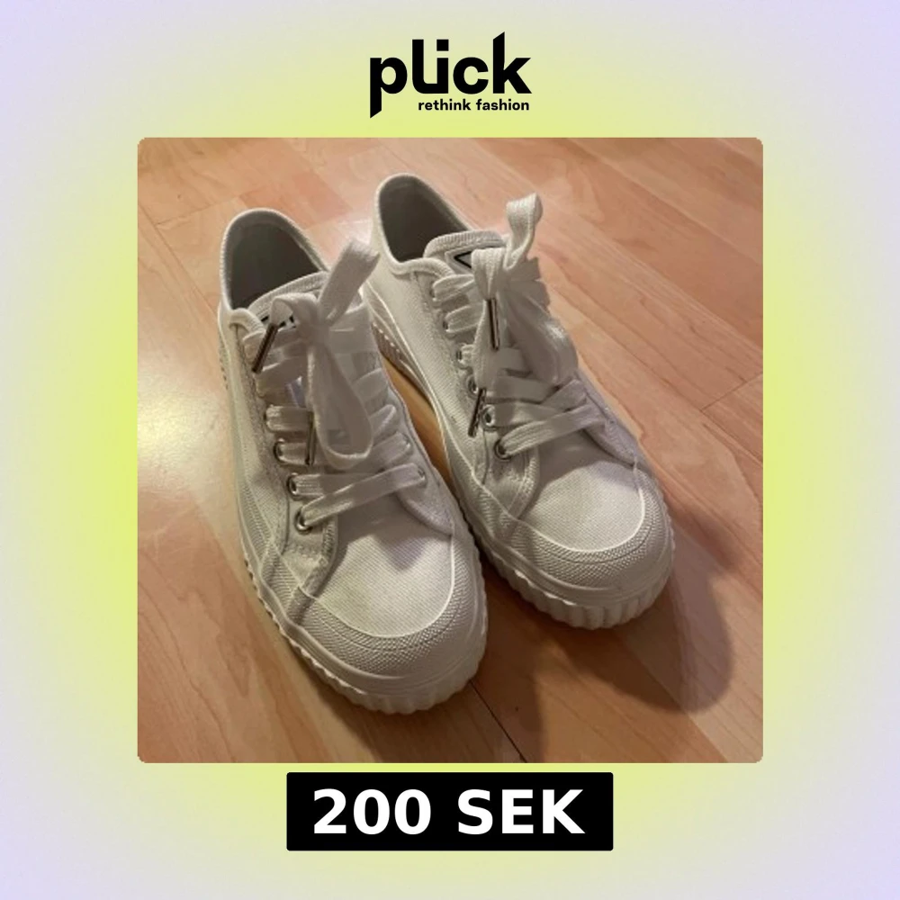 Fräscha vita sneakers från Aimn med grov platåsula och klassisk snörning. Skorna är i canvas med silvriga metalldetaljer vid snörhålen och har en rund tå. Perfekta för dig som gillar en clean och stilren look med lite extra höjd. Storlek 36 men innermåttet är 24.0 cm så upplever de mer som storlek 37. Nyskick! Endast testade utomhus.