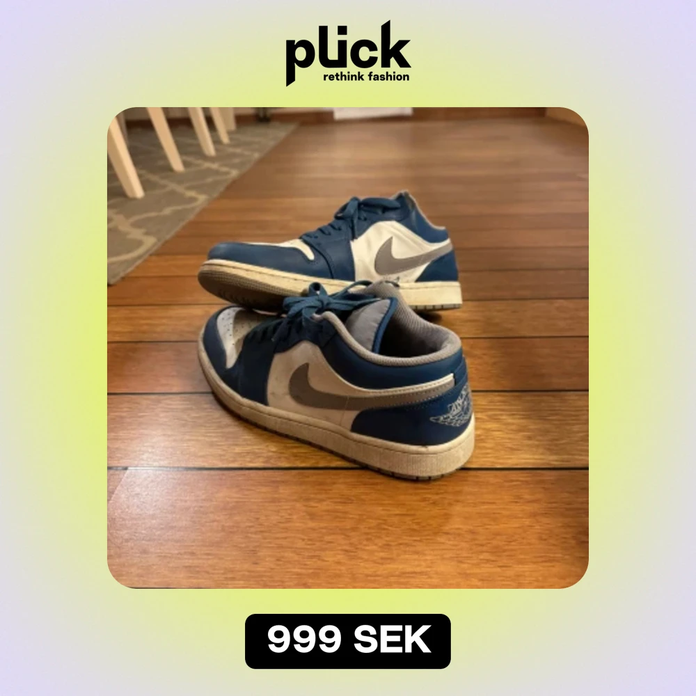 Hej! Säljer ett par Air Jordan 1 low i färg blå, storlek 42,5. Säljer de eftersom jag inte använder de längre. Hör av er vid eventuella frågor och funderingar!