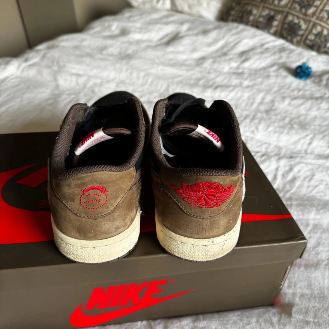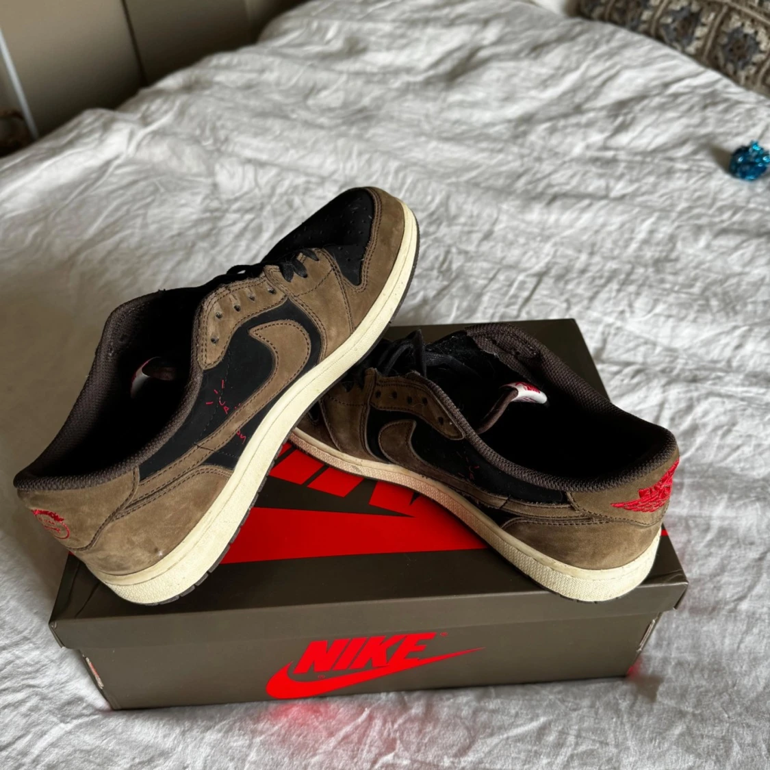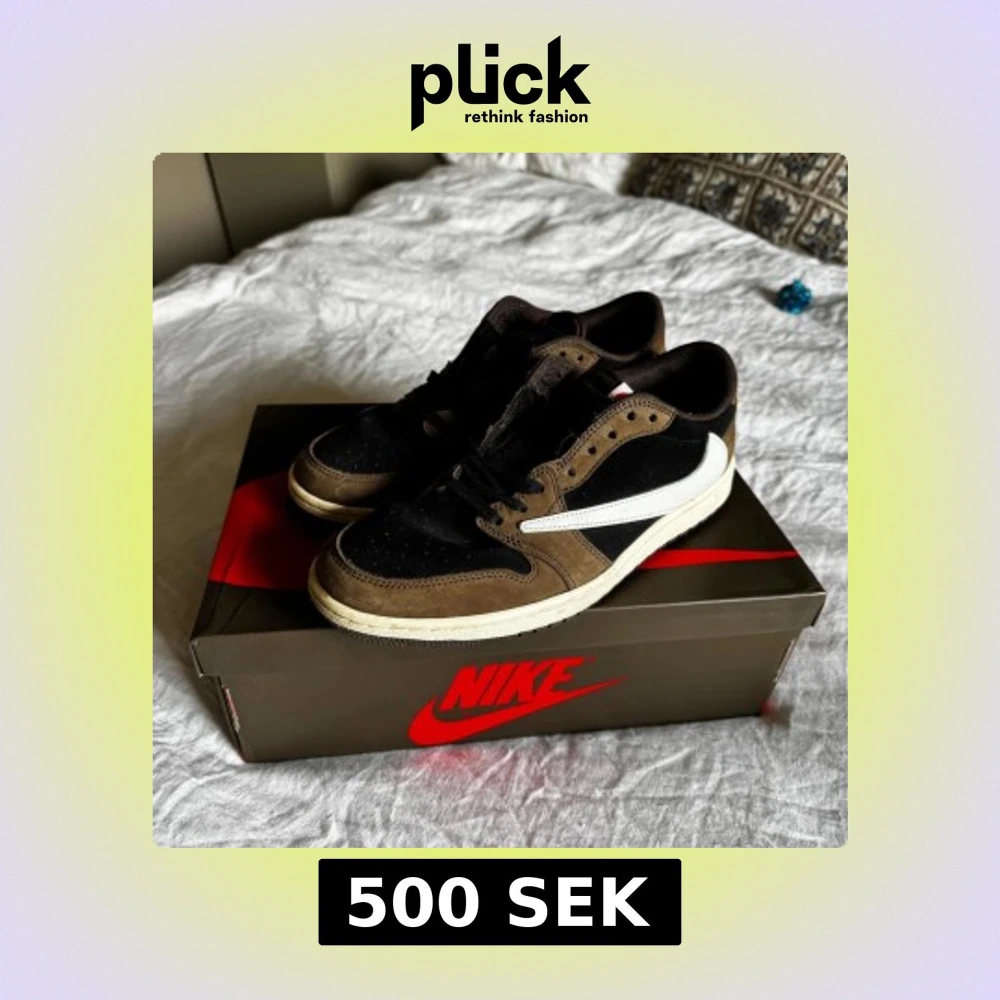 Säljer ett par Nike Air Jordan low og Travis Scott. OBS ej äkta. Endast använda några gånger. Säljes pga av jag inte använder dom längre. Dom är i bra skick och jag skickar med lite extra skosnören också!