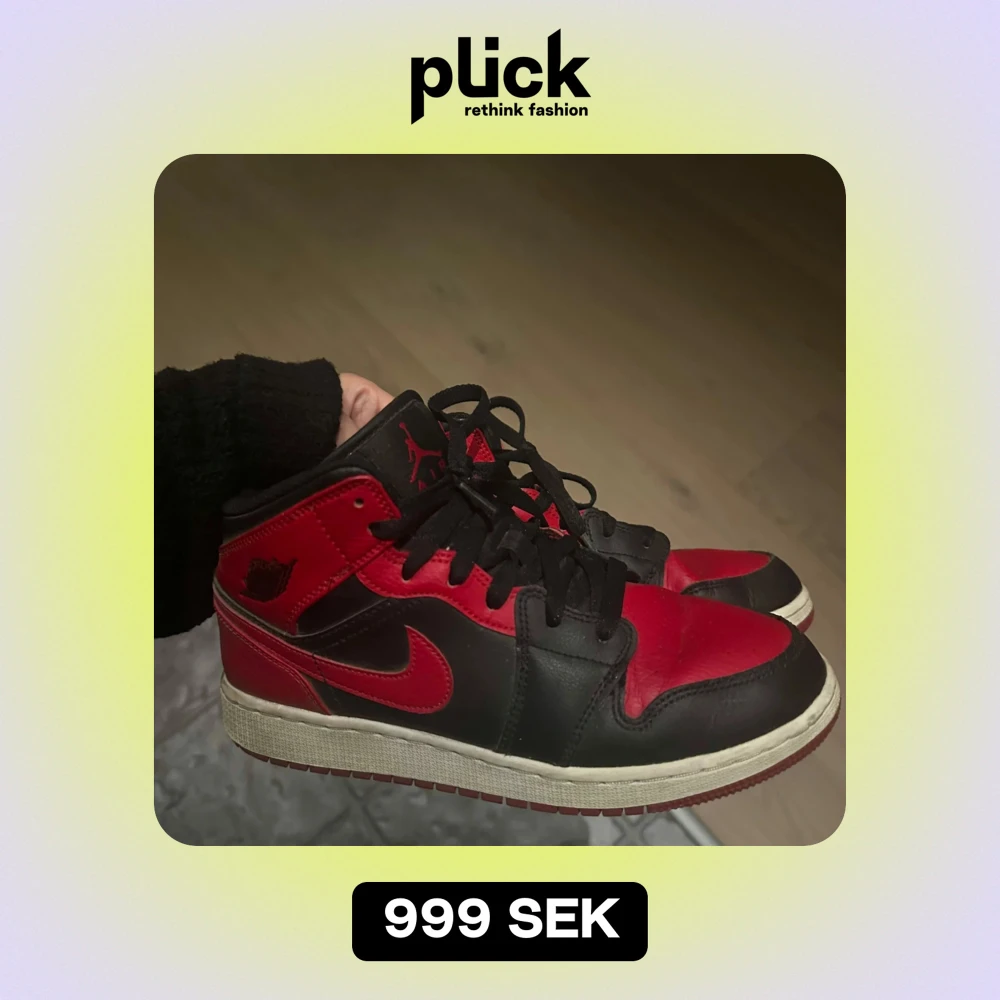 Röda air jordans mid 1 i storlek 39, normal i strlk. Väldigt fint skick! Inga defekter, inga hål osv. Nypris 2299kr säljer för 799kr. Man får med skollådan som dom kom i.