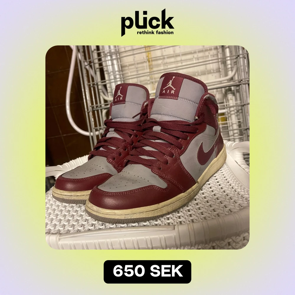 Säljer ett par snygga Nike Air Jordans i vinrött och grått. Skorna har klassisk snörning och en bekväm passform. Perfekta för både vardag och fest! De är i bra skick med en cool design som verkligen sticker ut. Modellen heter: Air Jordan 1 MID Cherrywood Red och dom kostar 2000kr ny pris på eBay och är storlek 42.