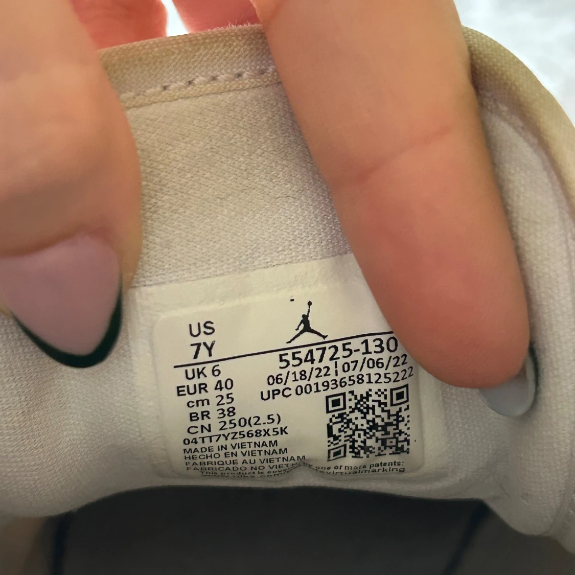 Det Storlek 40. Ser fina ut, läcker in lite när det är blött. Kommer i original låda.