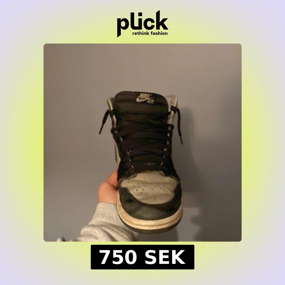 Säljer ett par Nike Air Jordan 1 High i svart och grått skinn. Klassisk siluett med svart swoosh, svarta snören och perforerad tåbox. Högt skaft och retrovibbar, perfekt för dig som gillar streetwear och sneakers med ikonisk design. Pris ej hugget i sten