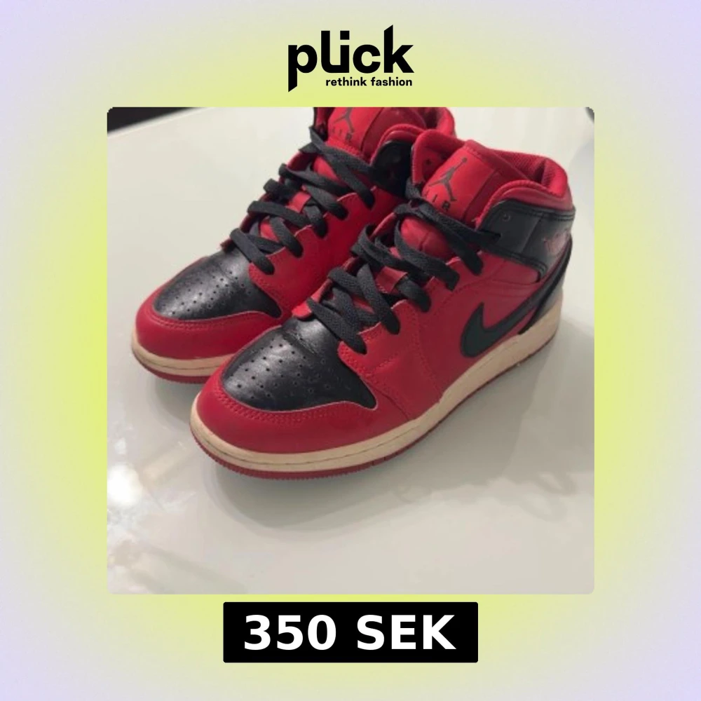 Säljer mina Air Jordan 1 red/black i storleken 36,5 för 350 kr de är köpta från zalando. Finns i Malmö annars går de att fraktas men köparen står för frakten