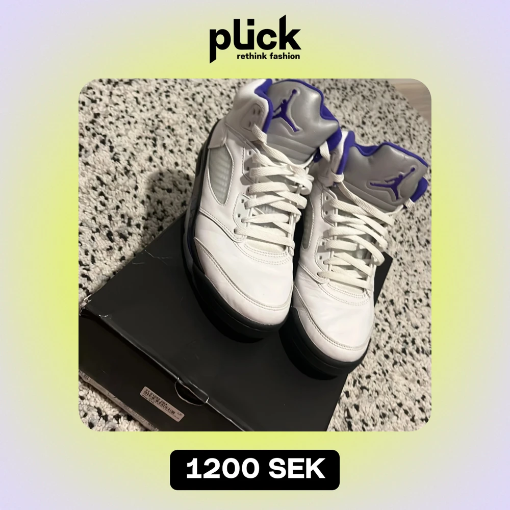 Säljer ett par snygga Nike Air Jordans i vitt och lila med låd, Skorna har en klassisk design med snörning och är i mycket bra skick. Perfekta för både vardag och fest! 🏀