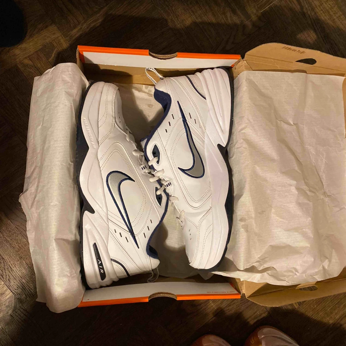 Nike air monarch skor storlek 45,5, använda en gång. säljs för att dom aldrig kom till användning. Fräscha, snygga och sköna skor som vill användas och komma till ett nytt hem! Postas eller hämtas upp på Kungsholmen. Öppen till frågor samt bud!