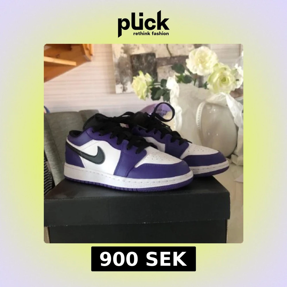 Säljer ett par lila low Air Jordans 1 från Restocks i strl. 36,5. Köpt sommaren 22 och använd ett väldigt fåtal gånger under hösten samma år. Har inte använt sedan dess. Nypris 3 200kr | FRI FRAKT I 7 DAGAR F.O.M. 10 AUG🌟