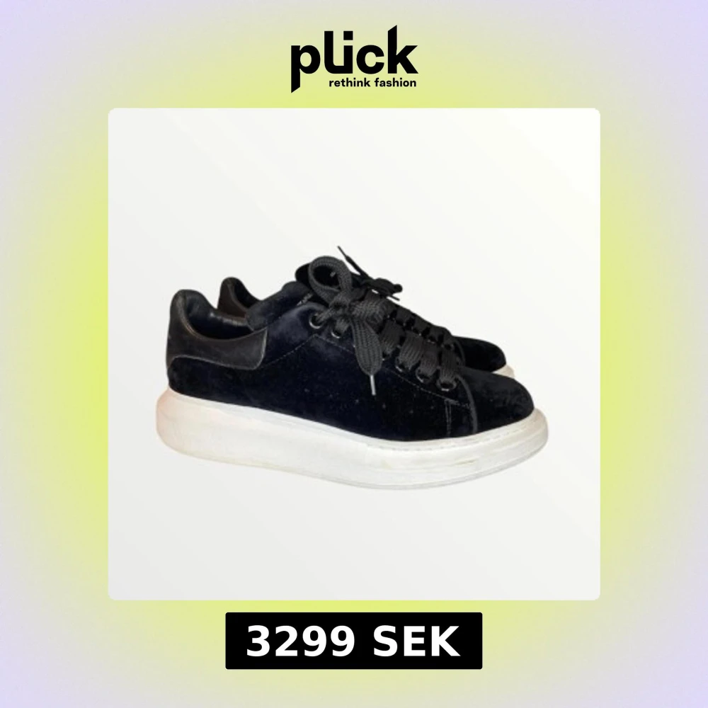 Snygga svarta sneakers från Alexander McQueen i mocka med vit sula. Skorna har snörning och en rund tå, vilket ger en stilren look. Perfekta för att lyfta din outfit med en touch av lyx.