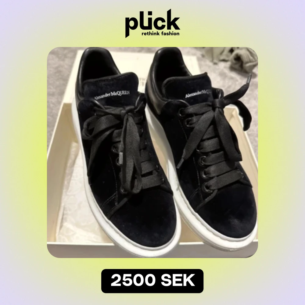 Säljer mina Alexander McQueen sneakers i svart velour. Sååå snygga. True to size. Så bra skick de kommer bara aldrig till användning tyvärr. Nypris runt 5000 kr. Säljer för 2 500 kr!!!!! ❤️ möts i Stockholm eller postar. Har box kvitto ALLT ingår