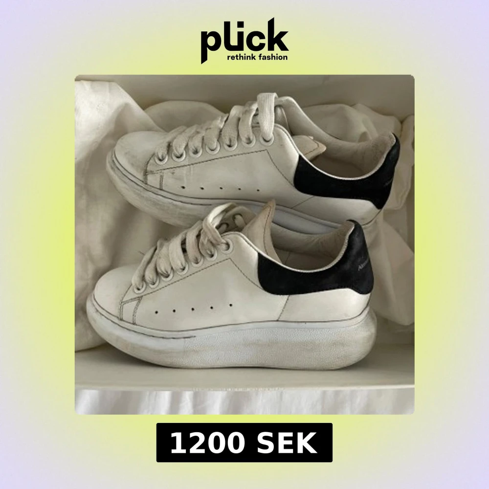Säljer mina sneakers från Alexander McQueen, strl 35,5 men stora i storleken, har själv normaltvis 36/37. Köpte på illum i cph och box osv medföljer vid köp. Går att putsa upp så dom blir vita men finns små defekter men knappast synliga, men därav pris 🤎