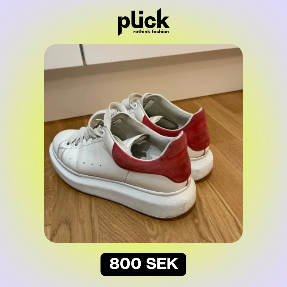 Alexander mqueen sneakers, storlek 38, köpt på plick, äkta, väl använd, köpt för 1000, pris kan diskuteras, super fin, säljer eftersom ja vill ha ett par svarta.