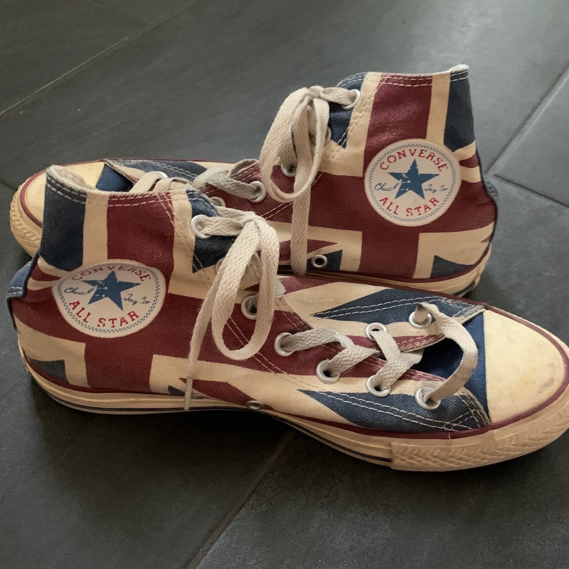 Ett par såååå coola och unika converse med UK flaggan! Säljer då dom är för små för mig men önskar att jag kunde ha dom kvar 😩 Skriv för mer info! 💞