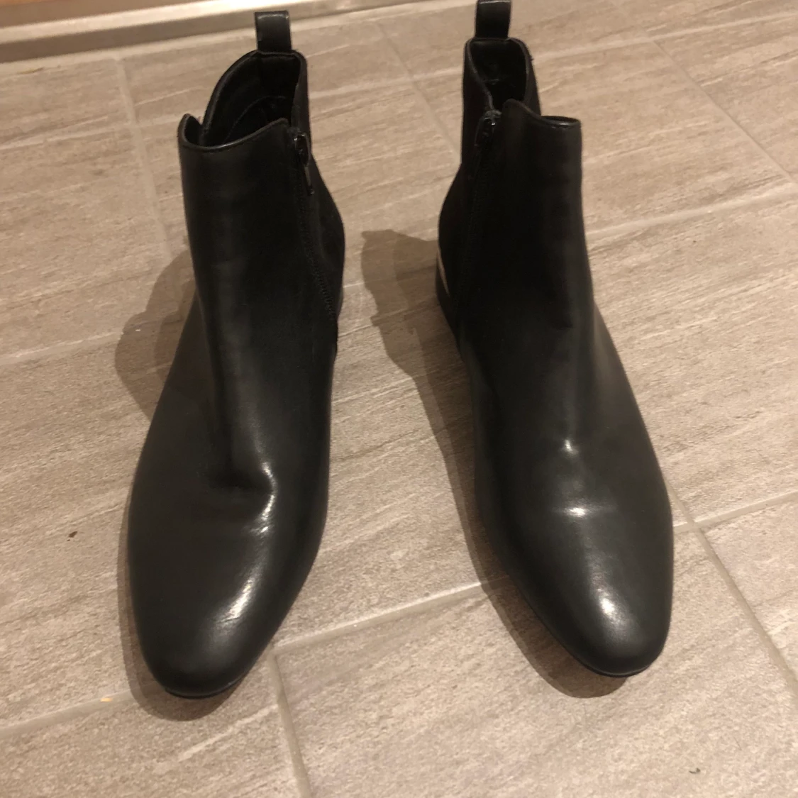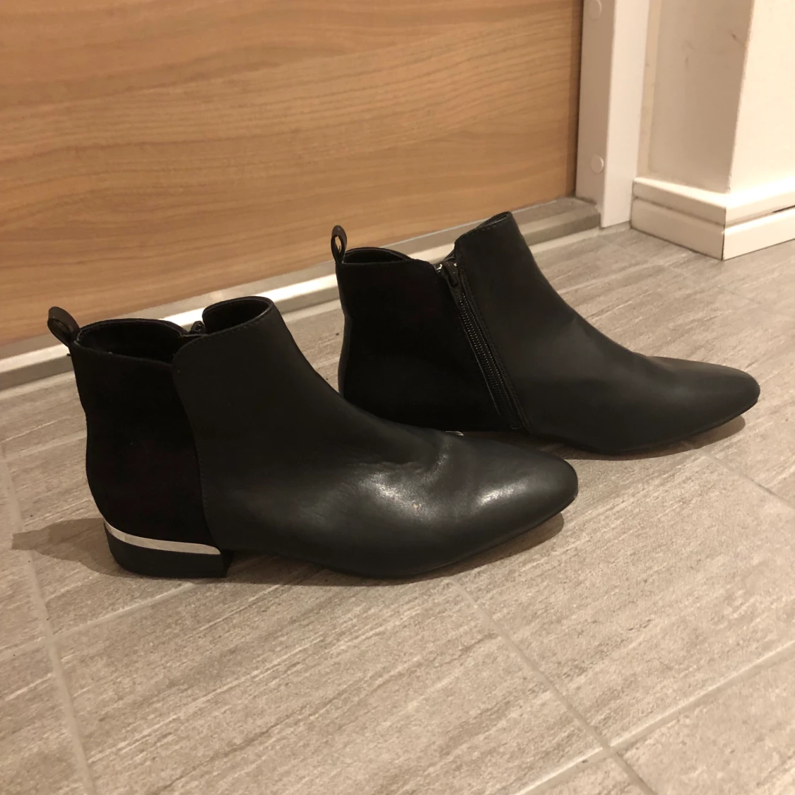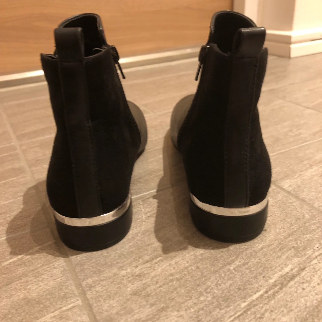 Helt oanvänd svart stövlett med en silver detalj vid klacken.
