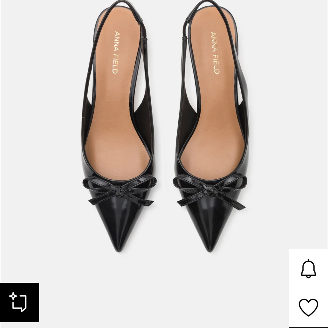 Intressekoll på mina snygga svarta pumps från Anna Field med spetsig tå, låg klack och öppen häl. Skorna har en elegant rosettdetalj framtill och är tillverkade i glansigt syntetmaterial. Perfekta för dig som vill ha en stilren och trendig look.