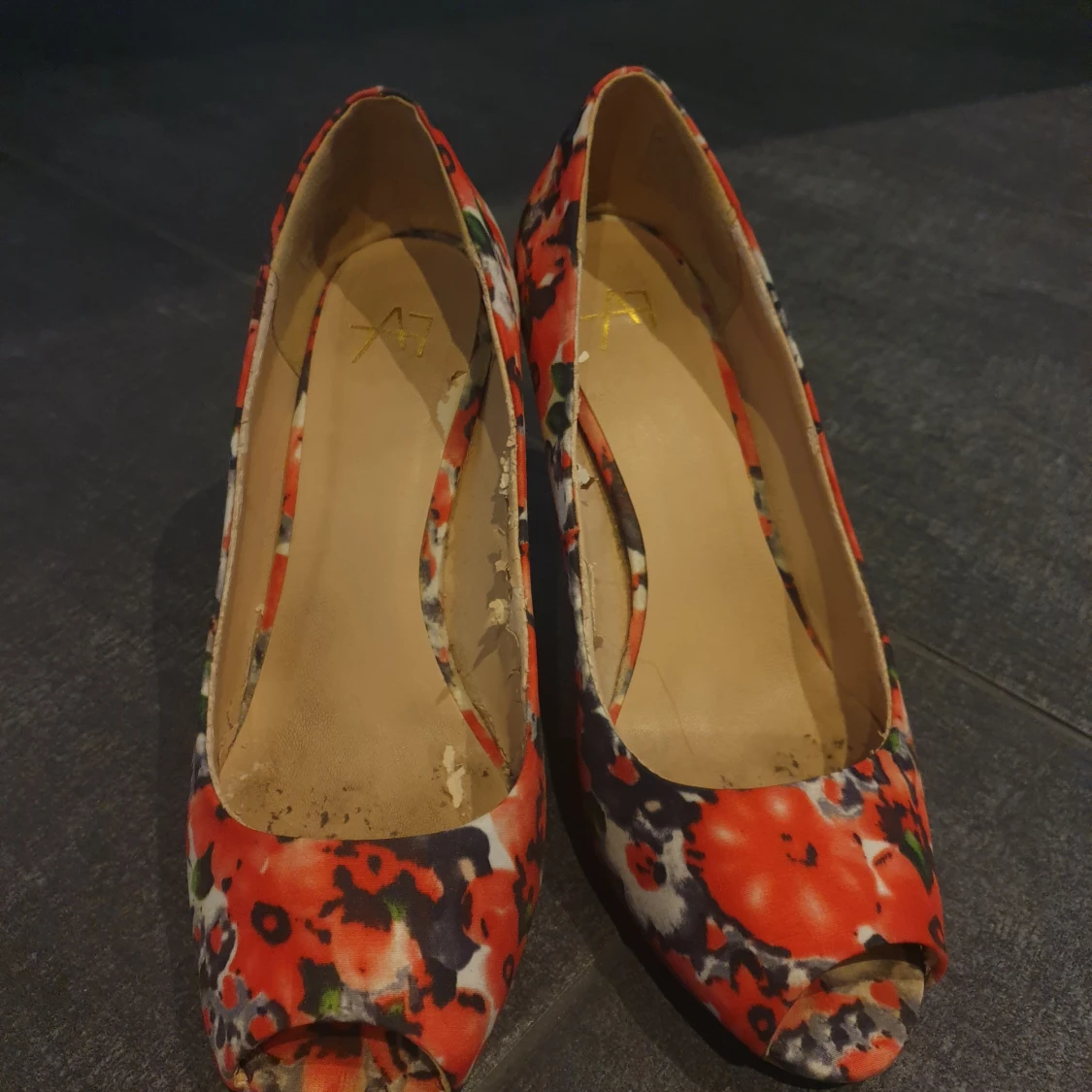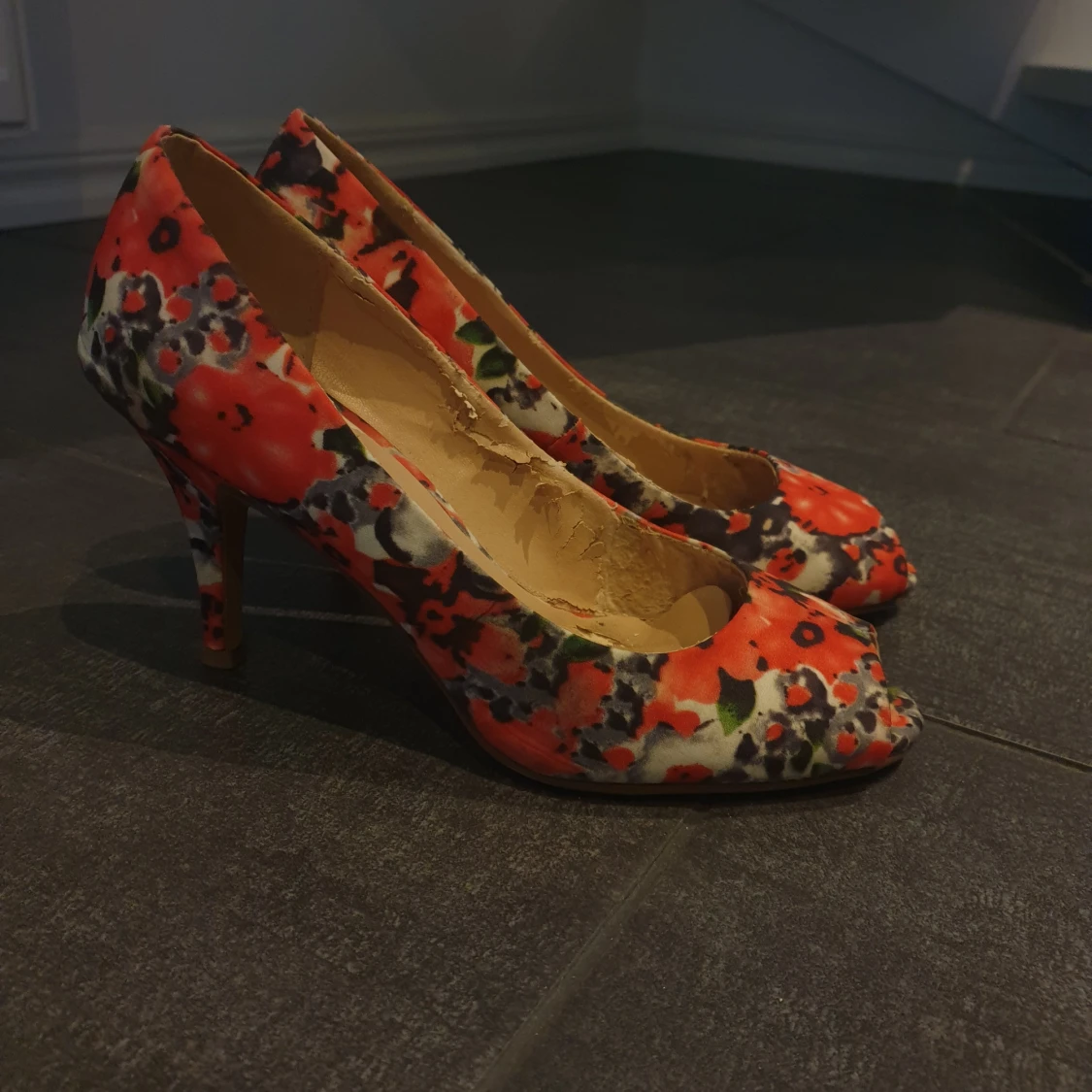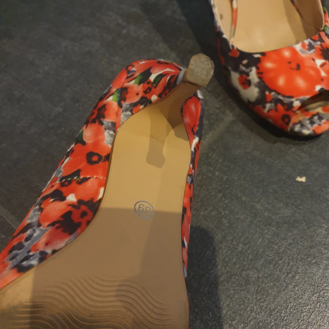 Röda blommiga klackskor