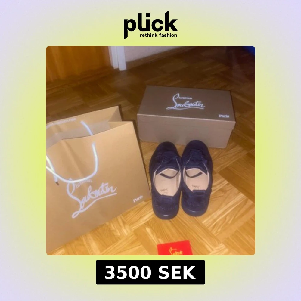 Säljer ett par mörkblå sneakers från Christian Louboutin, skorna är i bra skick och nästan helt nya, då jag säljer dem åt en vän så kan mer bilder dröja lite extra men du är alltid välkommen att fråga!!!