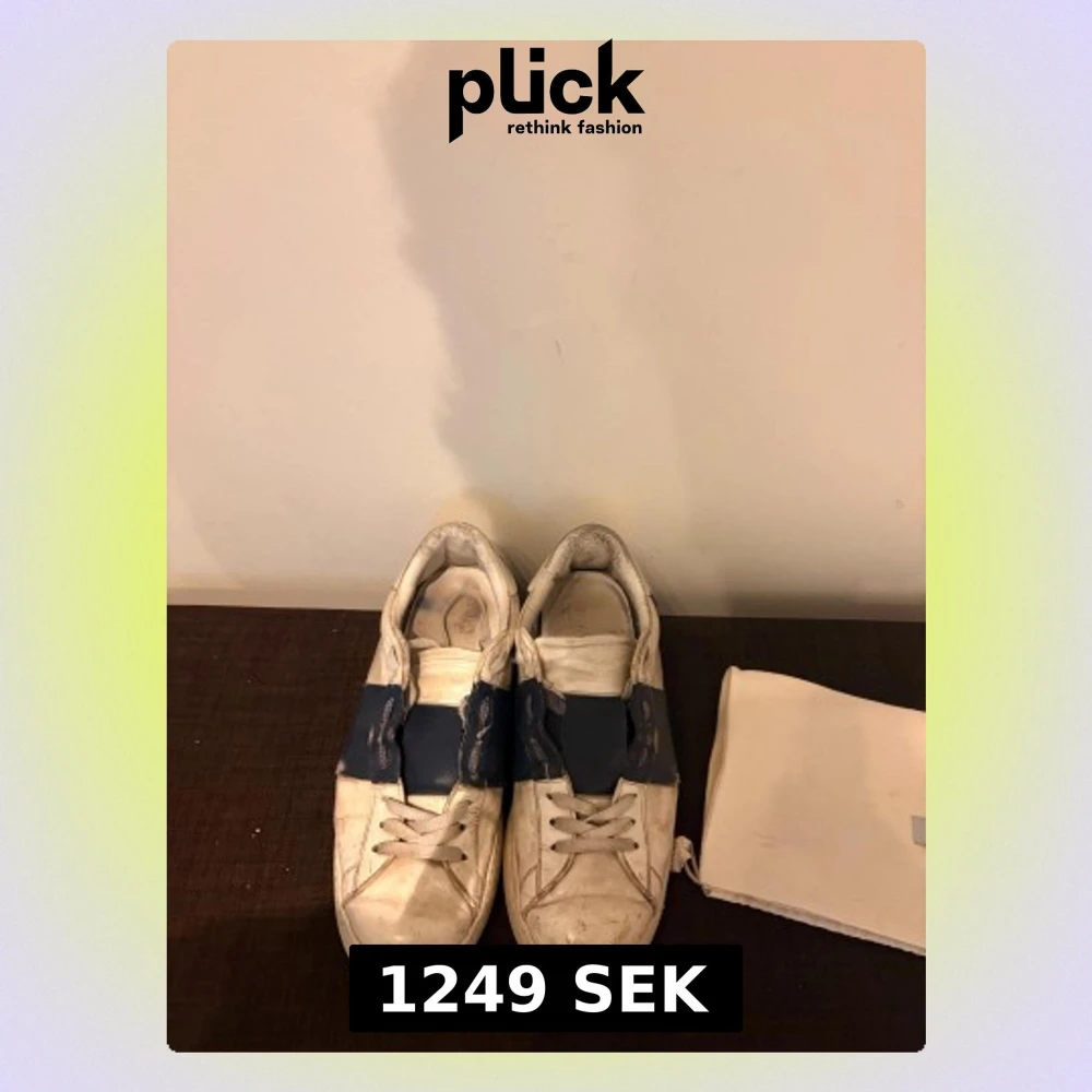 Säljer ett par Valentino Open sneakers i vitt skinn med breda mörkblå band över vristen. Klassisk rund tå och platt sula, med vita snören och diskret logga på plösen. Medföljer original dustbag. Perfekt för dig som gillar exklusiva streetwear-vibes.