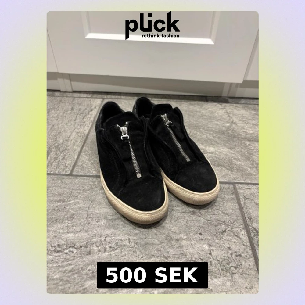 Svarta arigato skor i mocka som sålde slut på minuter när dom va som populärast. Väl använda men funkar fortfarande fint om man fräschar upp dom