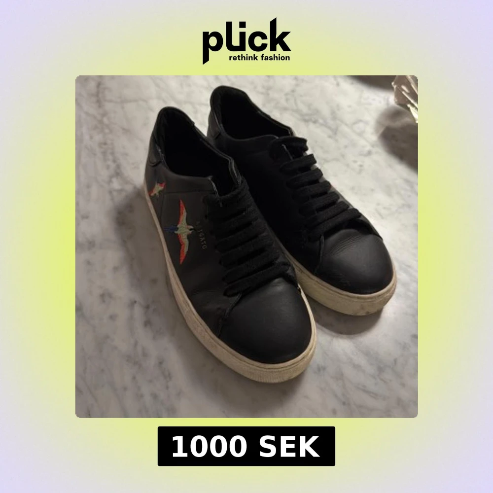 Snygga svarta sneakers från Axel Arigato med ett färgglatt fågelbroderi på sidan. Skorna har en rund tå och klassisk snörning. Perfekta för en stilren look.
