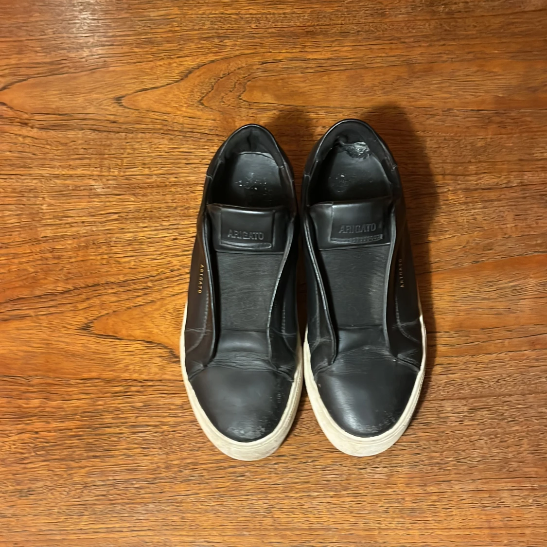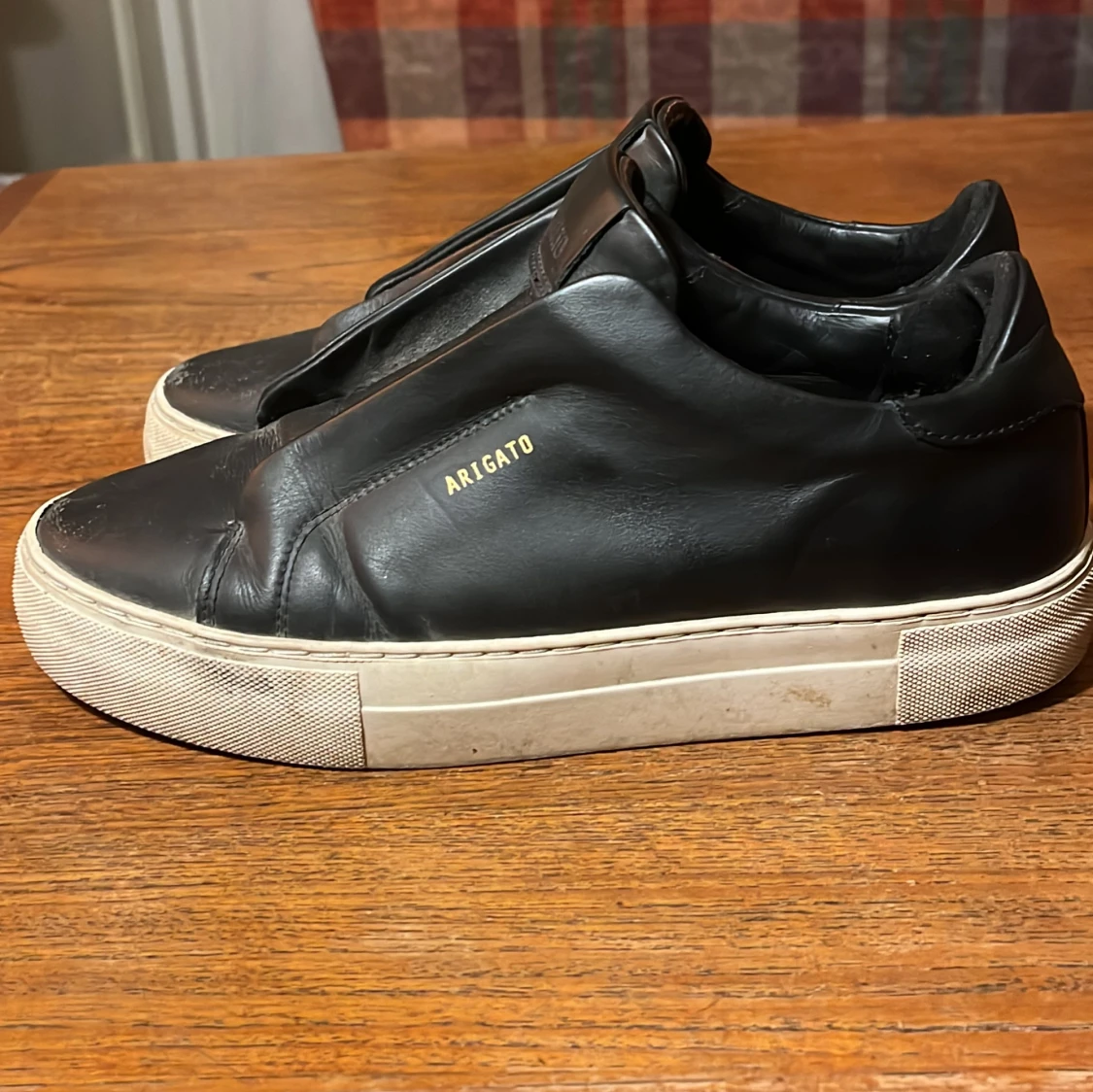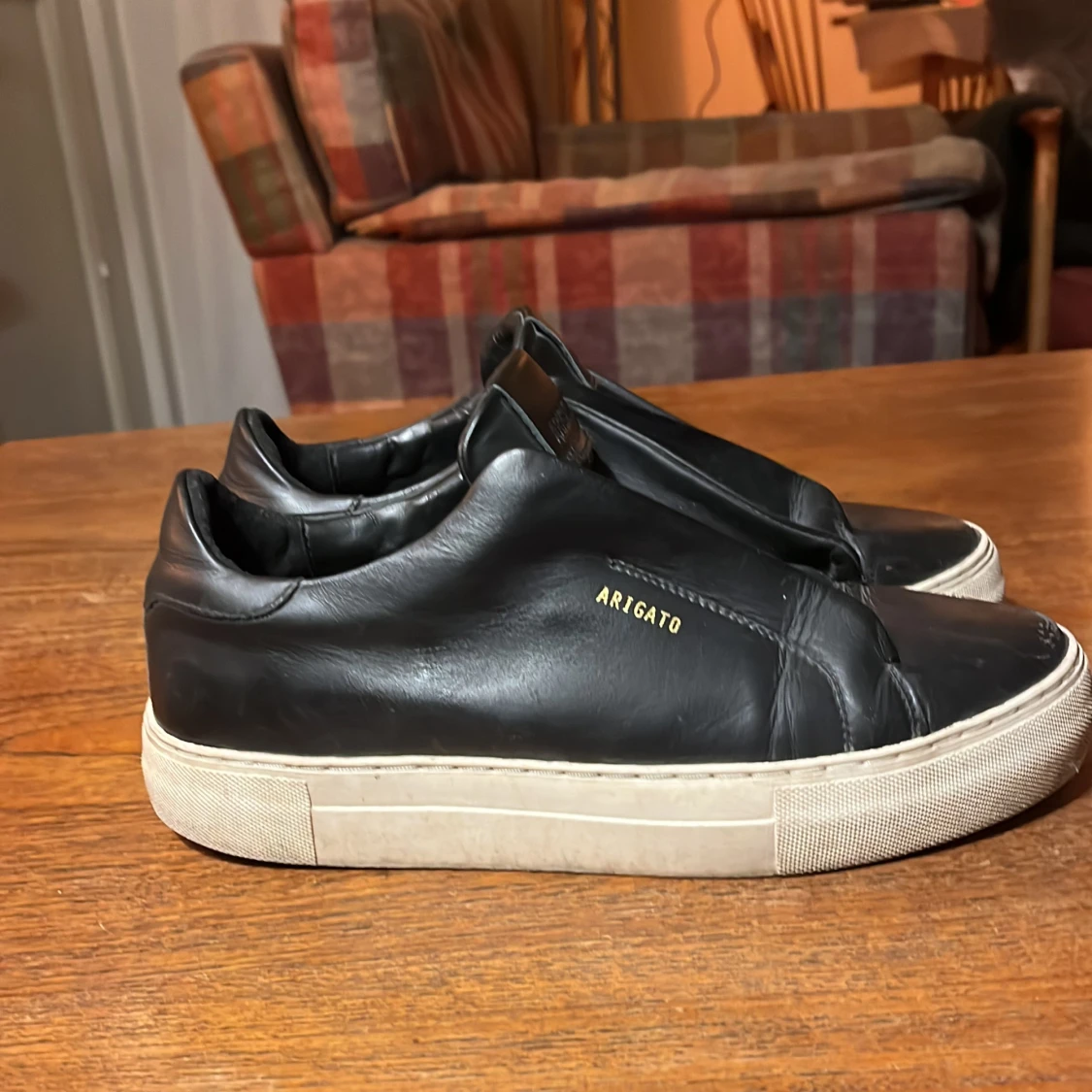 Snygga svarta sneakers från Axel Arigato med en stilren design. Skorna har en vit sula och är tillverkade i skinn. Perfekta för en casual look.