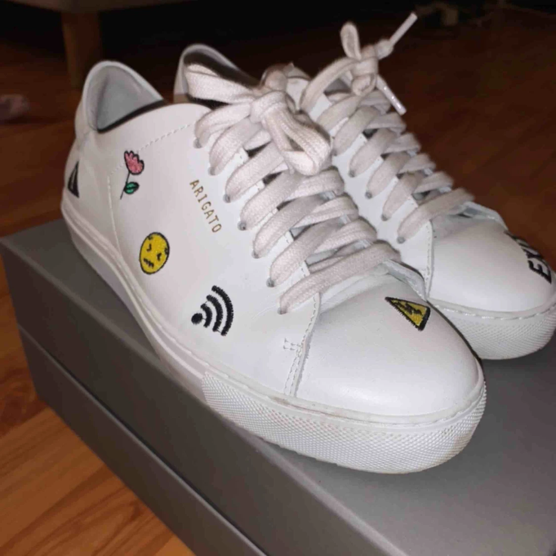 Vita arigato skor, använda endast 2 gånger. Kan skickas i kartong och med dustbag. Kan fraktas.