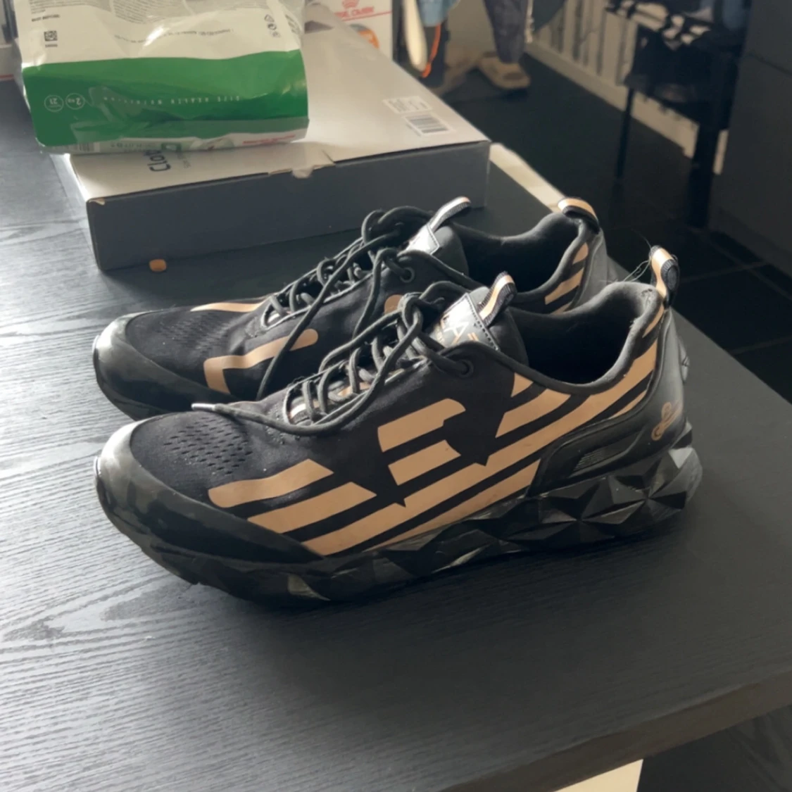 Säljer dessa otroligt snygga Armani skor i färgerna guld och svart för väldigt bra pris då dom inte passar mig längre. Skriv för fler bilder! Pris kan diskuteras.
