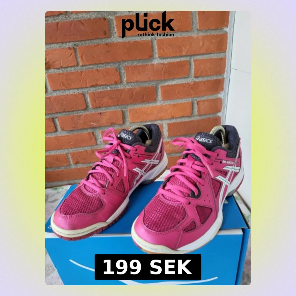 Säljer ett par snygga Asics Gel-Blocker sneakers i stark rosa med vita och mörkgrå detaljer. Skorna har mesh och syntetmaterial, klassisk snörning och platt sula. Perfekt för dig som gillar sportig stil och vill sticka ut med färg.