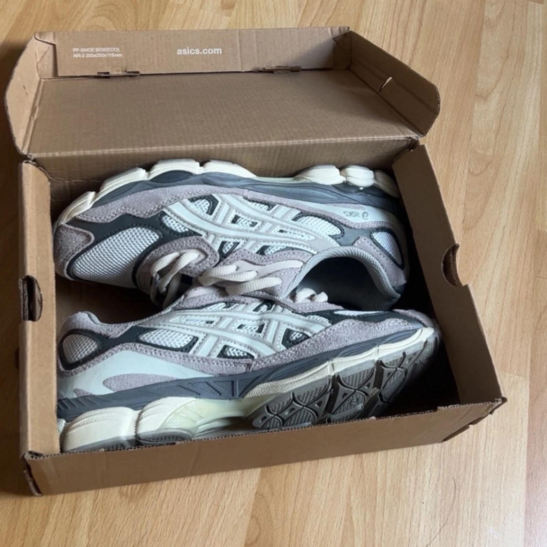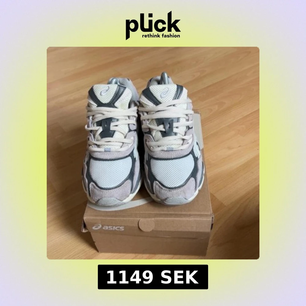Snygga Asics sneakers med chunky sula och cool retrodesign. Skorna har en mix av grått, beige och vitt med detaljer i mocka och mesh. Ikoniska Asics-loggan på sidan och snörning framtill. Perfekta för dig som gillar streetstyle och sportig vibe. Priset kan diskuteras👍