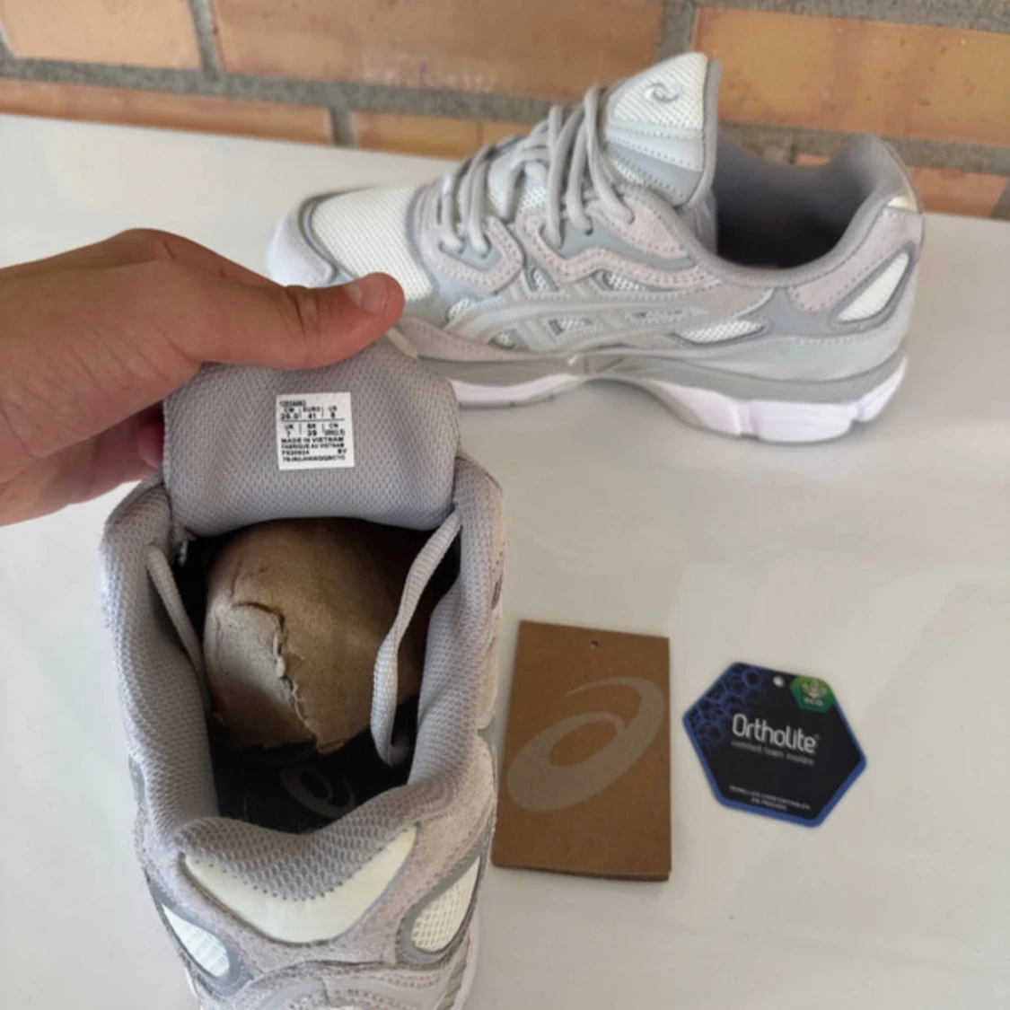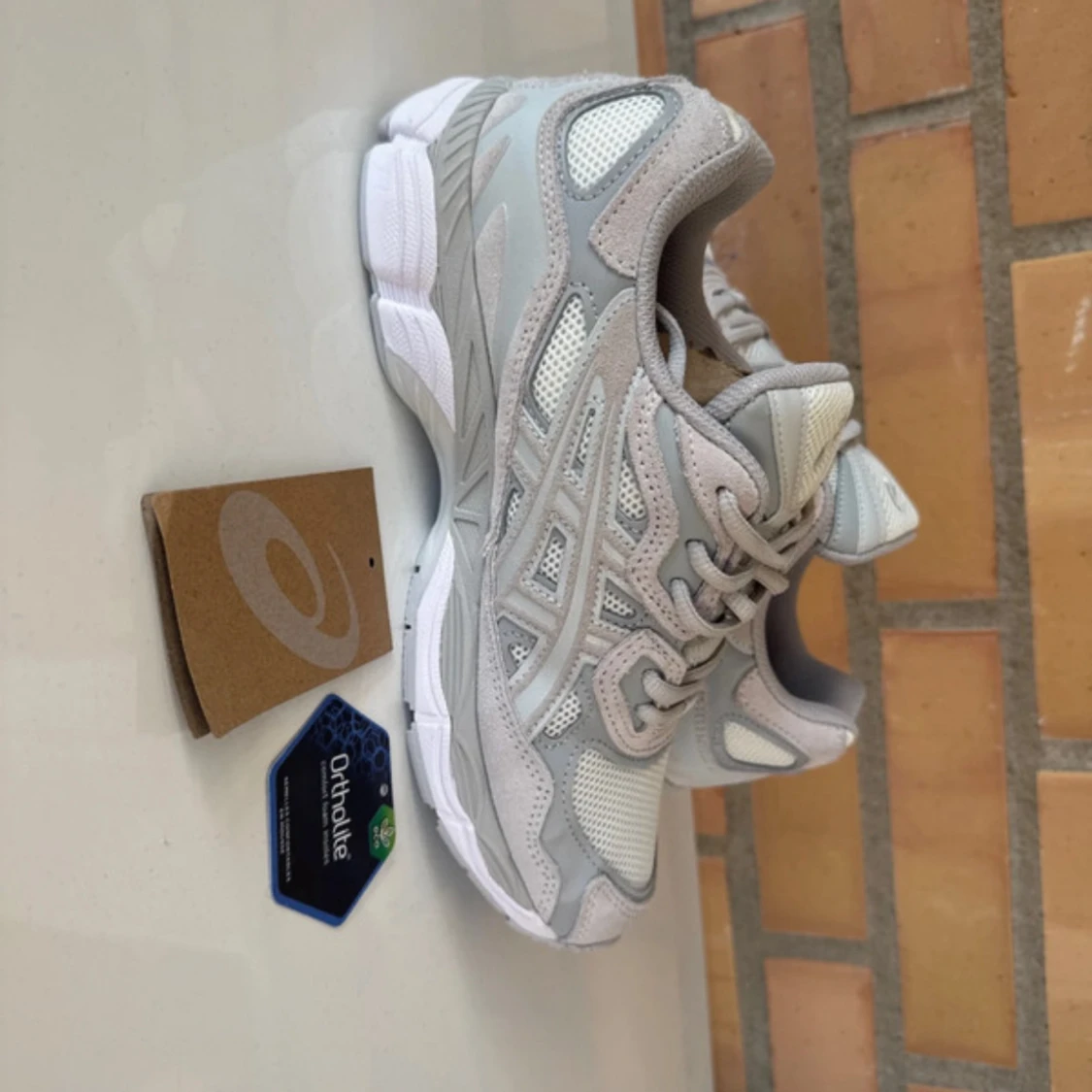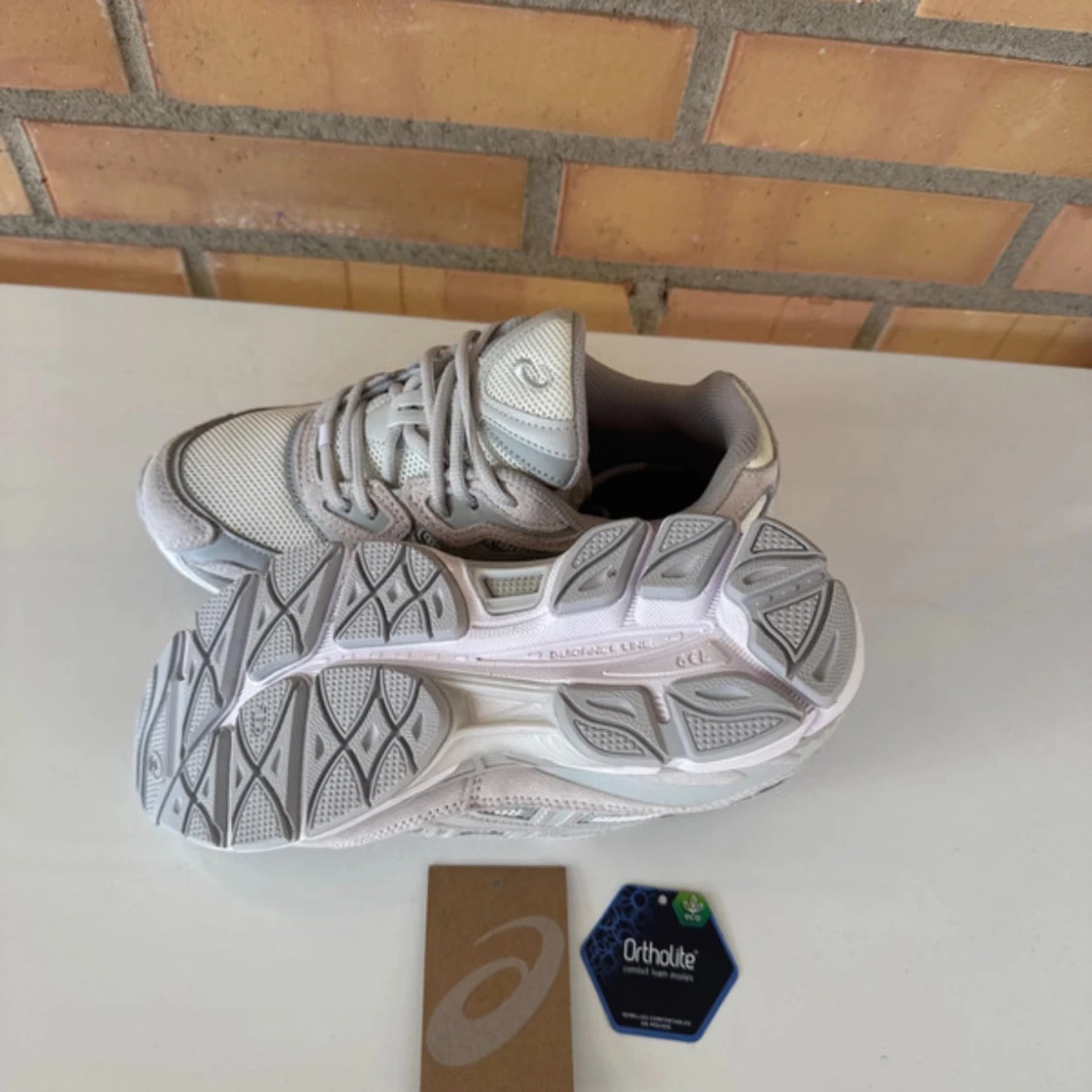 Snygga Asics sneakers i grått och vitt med coola detaljer. Ovandelen är i mesh och mocka för en sportig vibe och skön känsla. Sulan är rejäl och har Ortholite-dämpning för extra komfort. Perfekta för dig som gillar stilrena och fräscha sneakers.