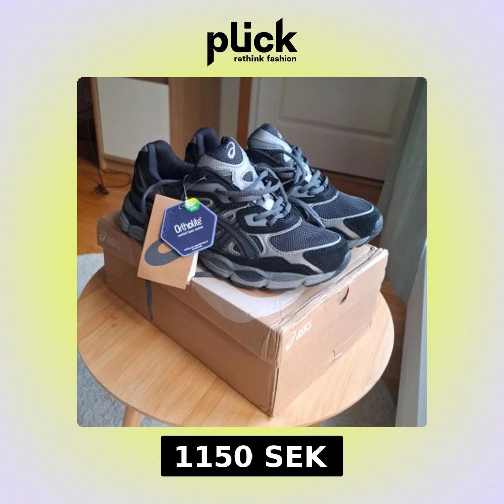Säljer ett par Asics sneakers i svart och grått med coola detaljer och meshpaneler för extra andningsförmåga. Skorna har snörning och en chunky sula som ger skön komfort. Perfekta för dig som gillar sportig stil och vill ha något som sticker ut. Och dom är helt oanvända för dom var för små.