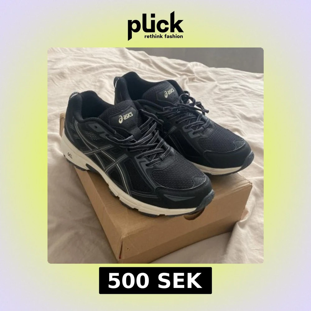 Svarta Asics sneakers med vita detaljer och robust sula. Ovandel i mesh och syntetläder, snörning framtill och klassisk Asics-logga på sidan. Perfekta för dig som gillar sportig stil och vill ha bekväma skor till vardagen.