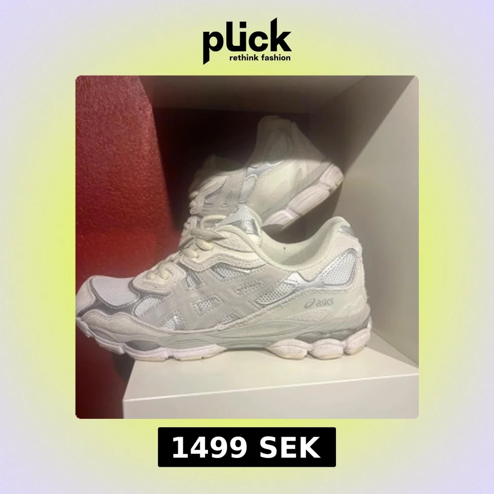Säljer ett par vita Asics GEL sneakers med silvriga detaljer och meshpaneler för extra ventilation. Skorna har snörning och en chunky sula med dämpning som ger skön komfort. Perfekt för dig som gillar sportig stil och vill ha ett par fräscha sneakers till vardags.