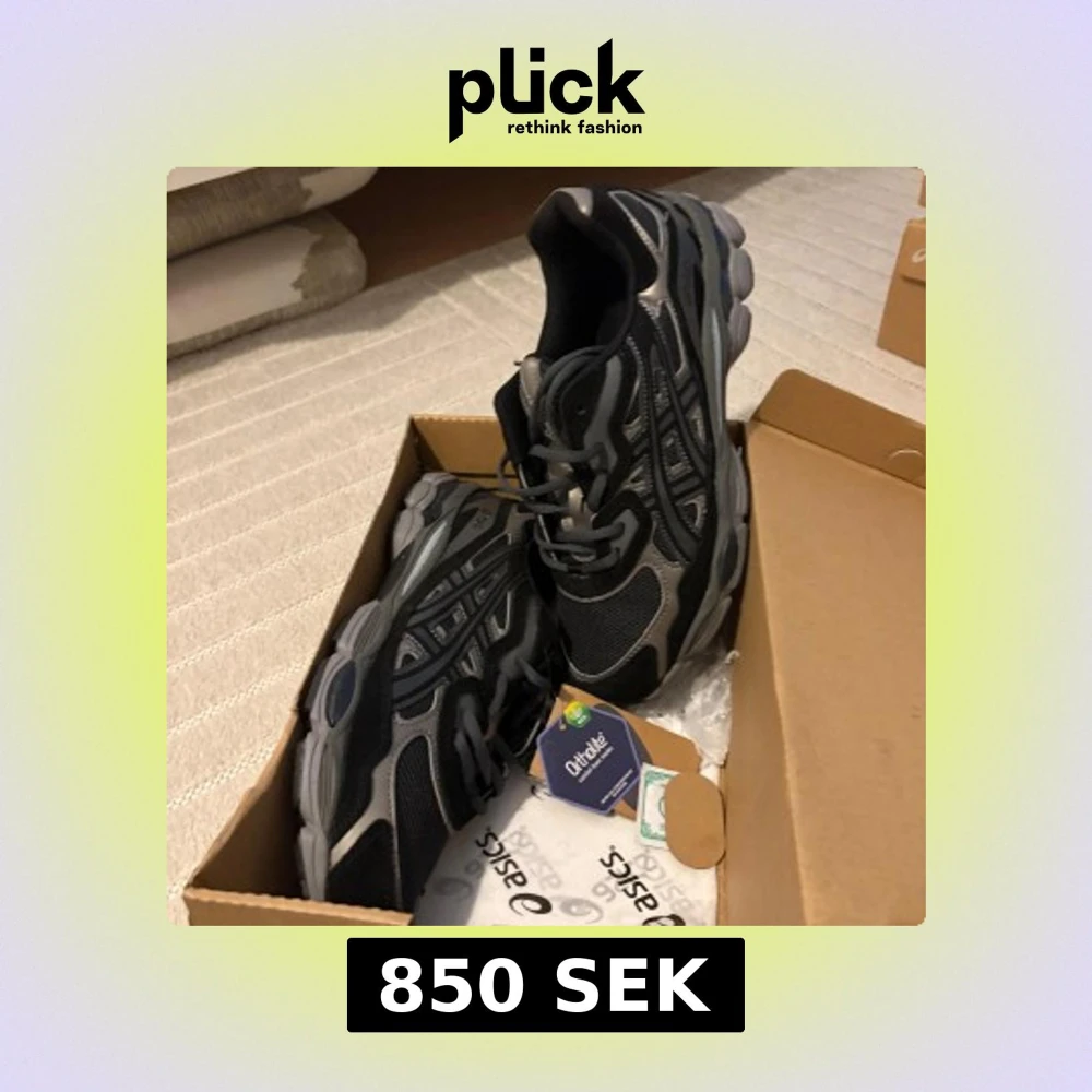Säljer ett par snygga Asics sneakers i svart och grått med coola detaljer och meshpaneler för extra andningsförmåga. Skorna har en chunky sula och klassisk snörning. Perfekta för dig som gillar sportig stil och vill ha bekväma skor till vardagen.