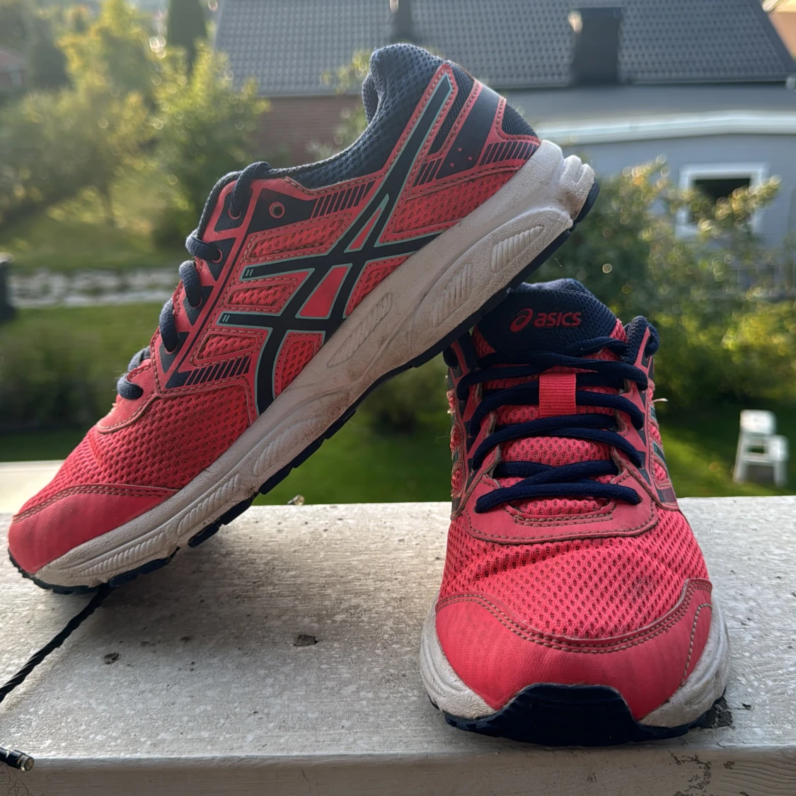 Snygga neon rosa skor från asics run! Sköna för foten & ger ett skönt stöd. Knappt använda.