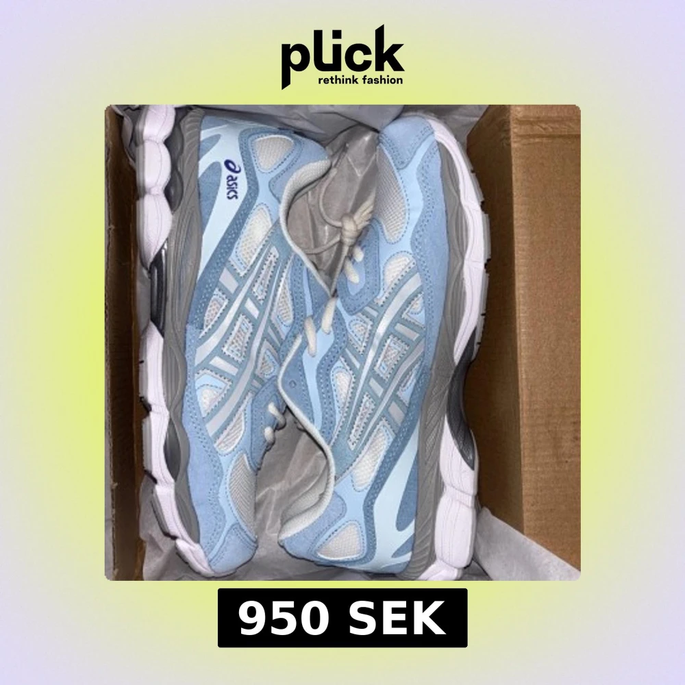 Snygga Asics sneakers i ljusblått och vitt med grå detaljer. Skorna har meshpaneler för bra andningsförmåga, klassisk snörning och en bekväm, stötdämpande sula. Perfekta för dig som gillar sportig stil och vill ha något fräscht till vardags.