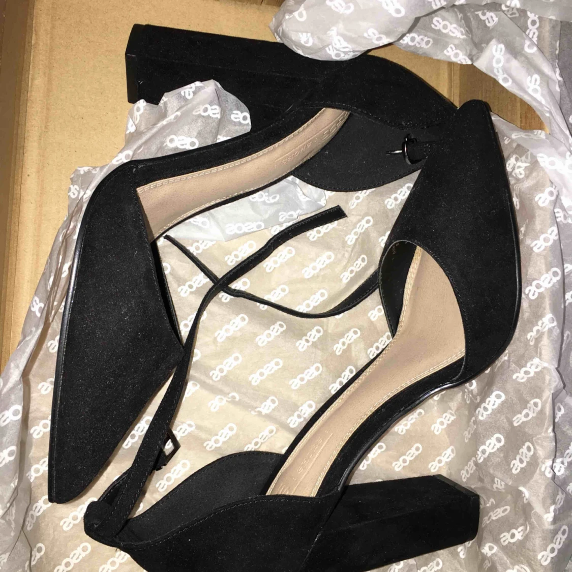 Svarta klackskor med 9cm klack. Oanvända