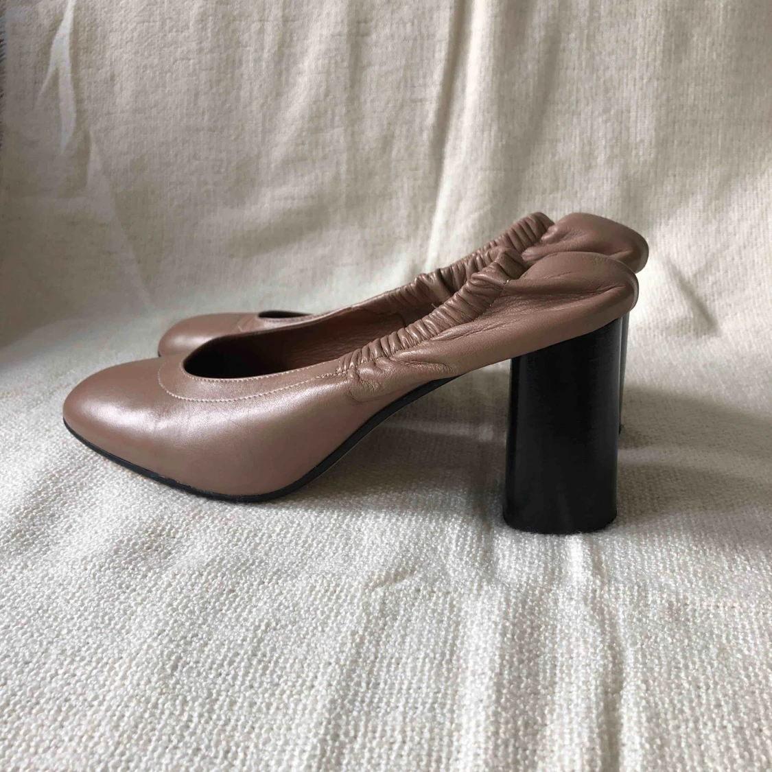 Pumps med resår i hälen från ATP Atelier i storlek 37. Använda en gång. Liknar Céline klackarna med resår.