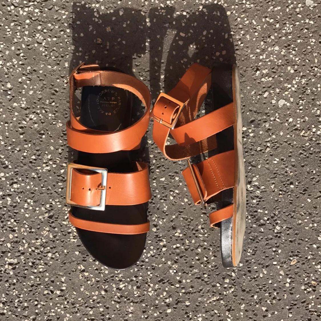 ATP sandals in brown leather with shaped sole and build up layer what make the feet feel comfy while walking. They are worn once o Selling these because I bought them too small, thought they were my size, I'm a size 38, but they turned out to be too small.
