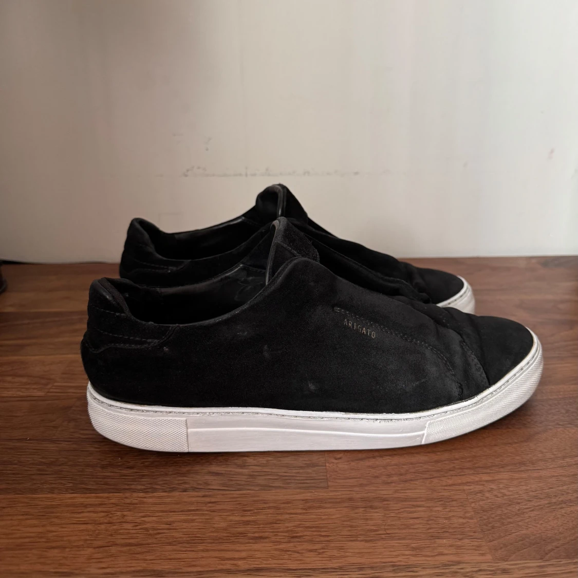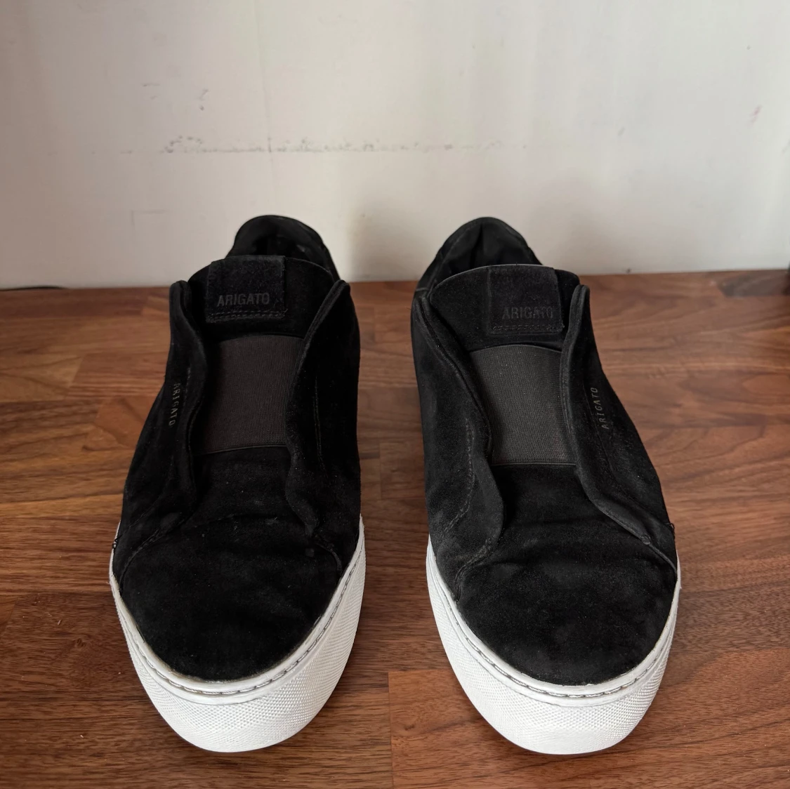 Säljer ett par Axel Arigato 360 laceless i mocka, original pris runt 2500kr. Skorna är lite slitna på insidan men det är ingenting man ser.