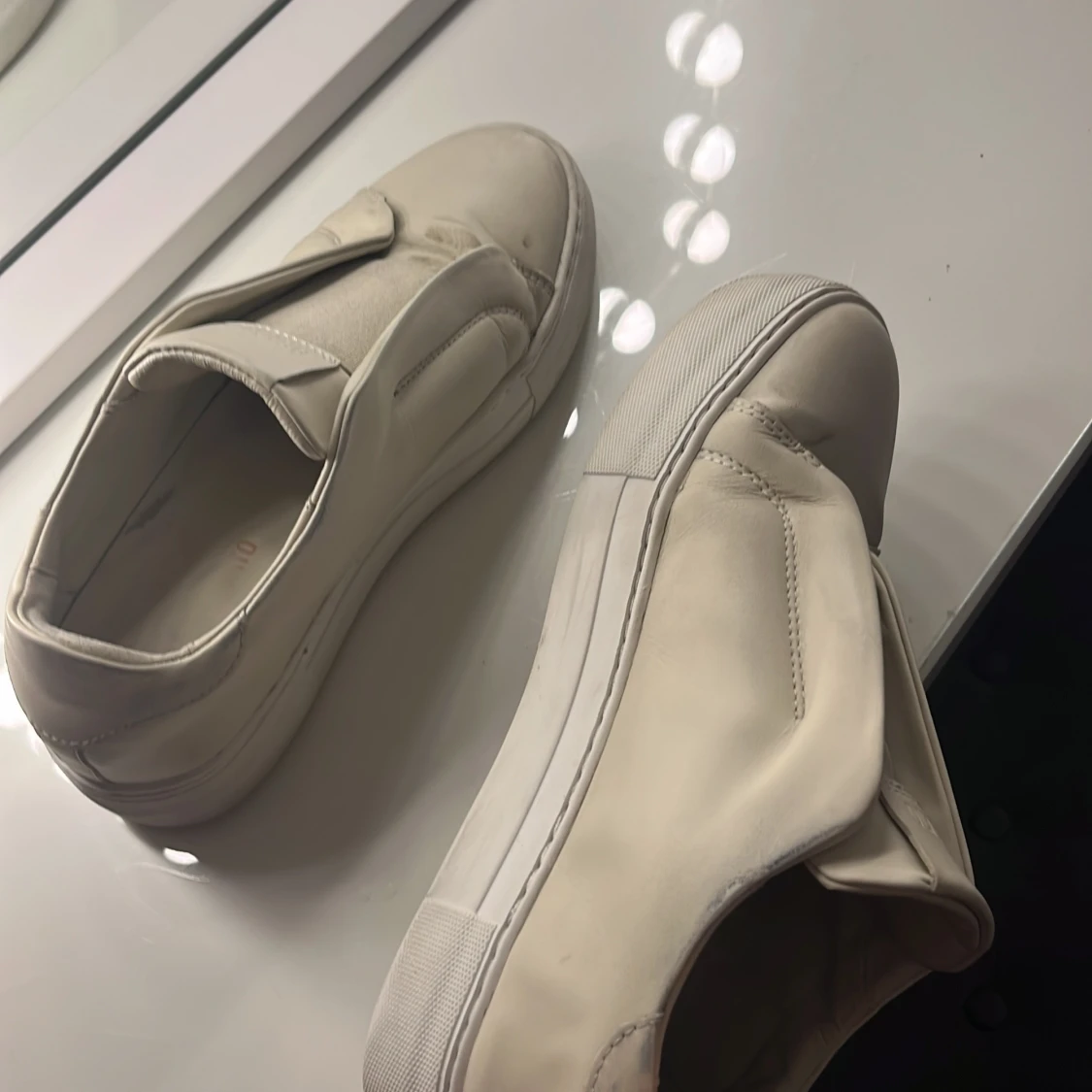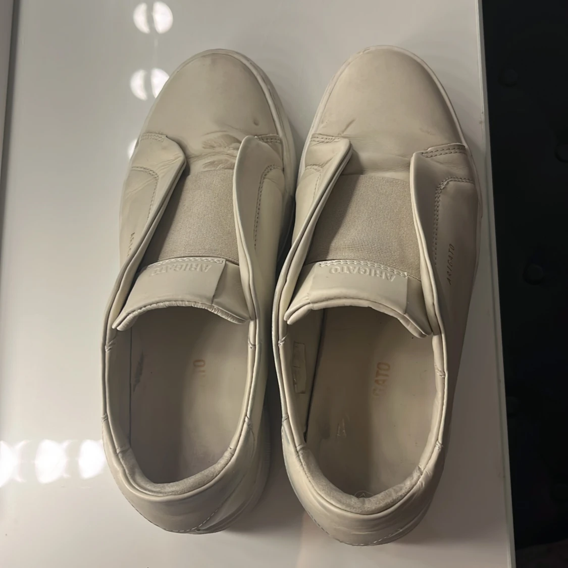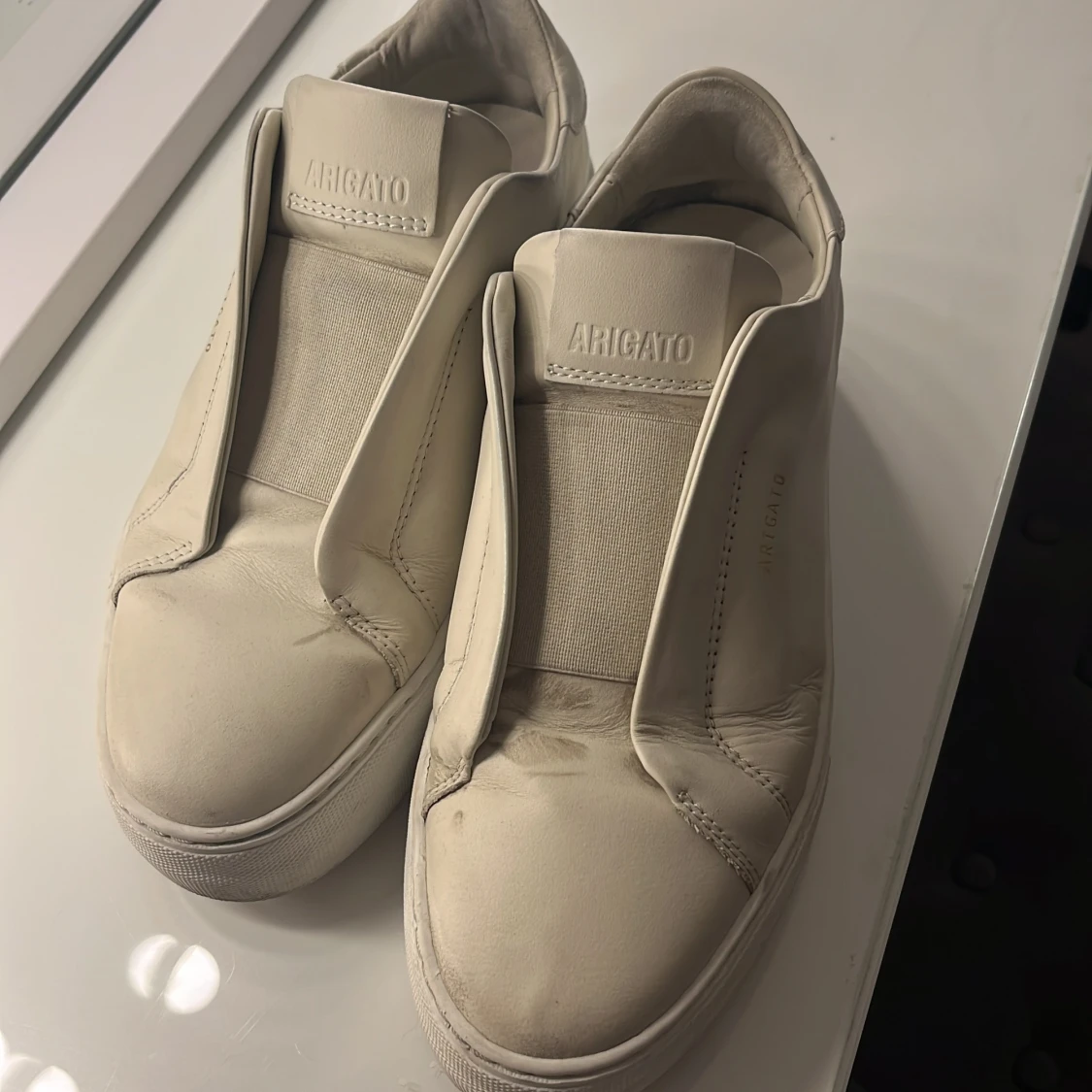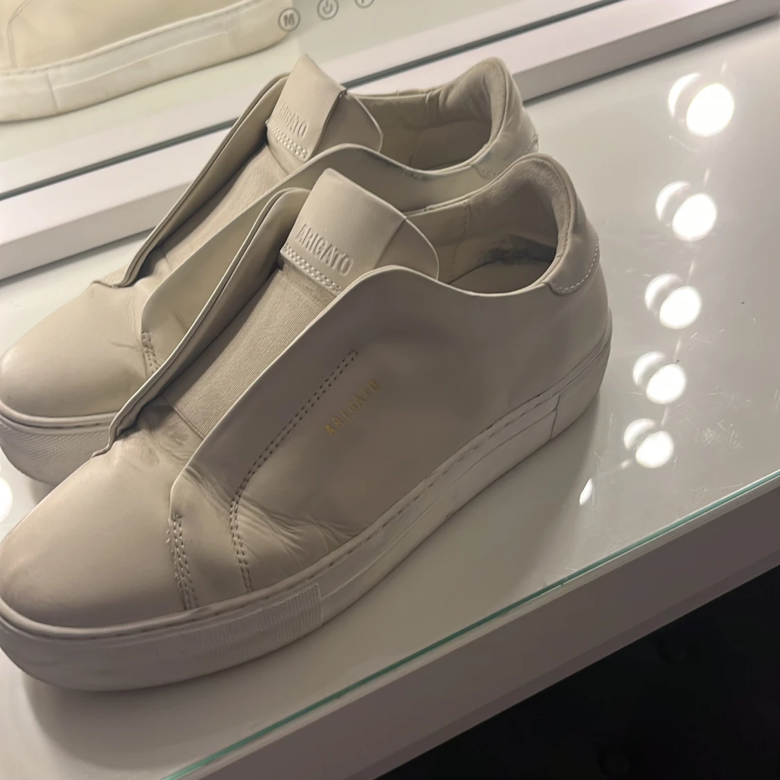 vita sneakers från Axel Arigato i skinn med elastiskt band över vristen istället för klassisk snörning. Diskret logga i guld på sidan och på plösen. Platt sula och rund tå ger en clean look som passar till allt. Pris kan diskuteras