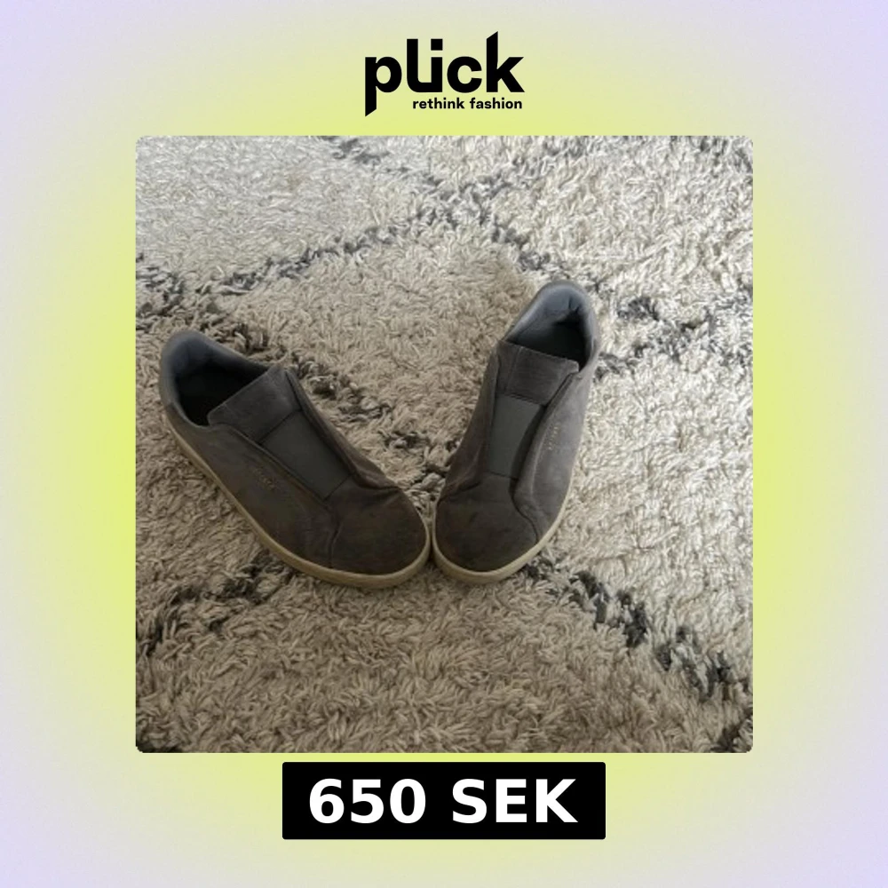Snygga grå slip-on sneakers från Axel Arigato med stilren design och diskret logga i guld på sidan. Skorna har en rund tå, platt sula och är tillverkade i mjuk mocka med elastiskt band över vristen för enkel påtagning. Perfekta för dig som gillar minimalistisk stil.