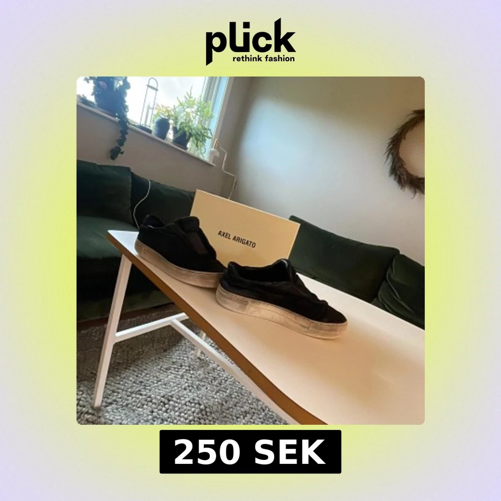 Hej! Säljer mina slitna Axel Arigato skor. (Äkta) Dom är mycket använda men funkar bra.